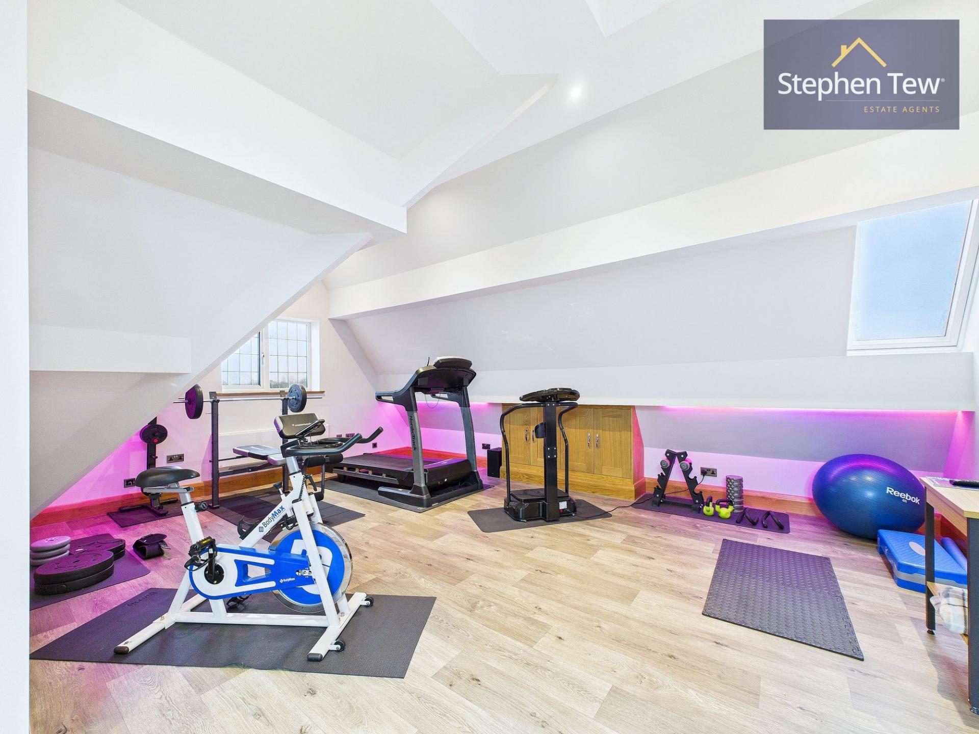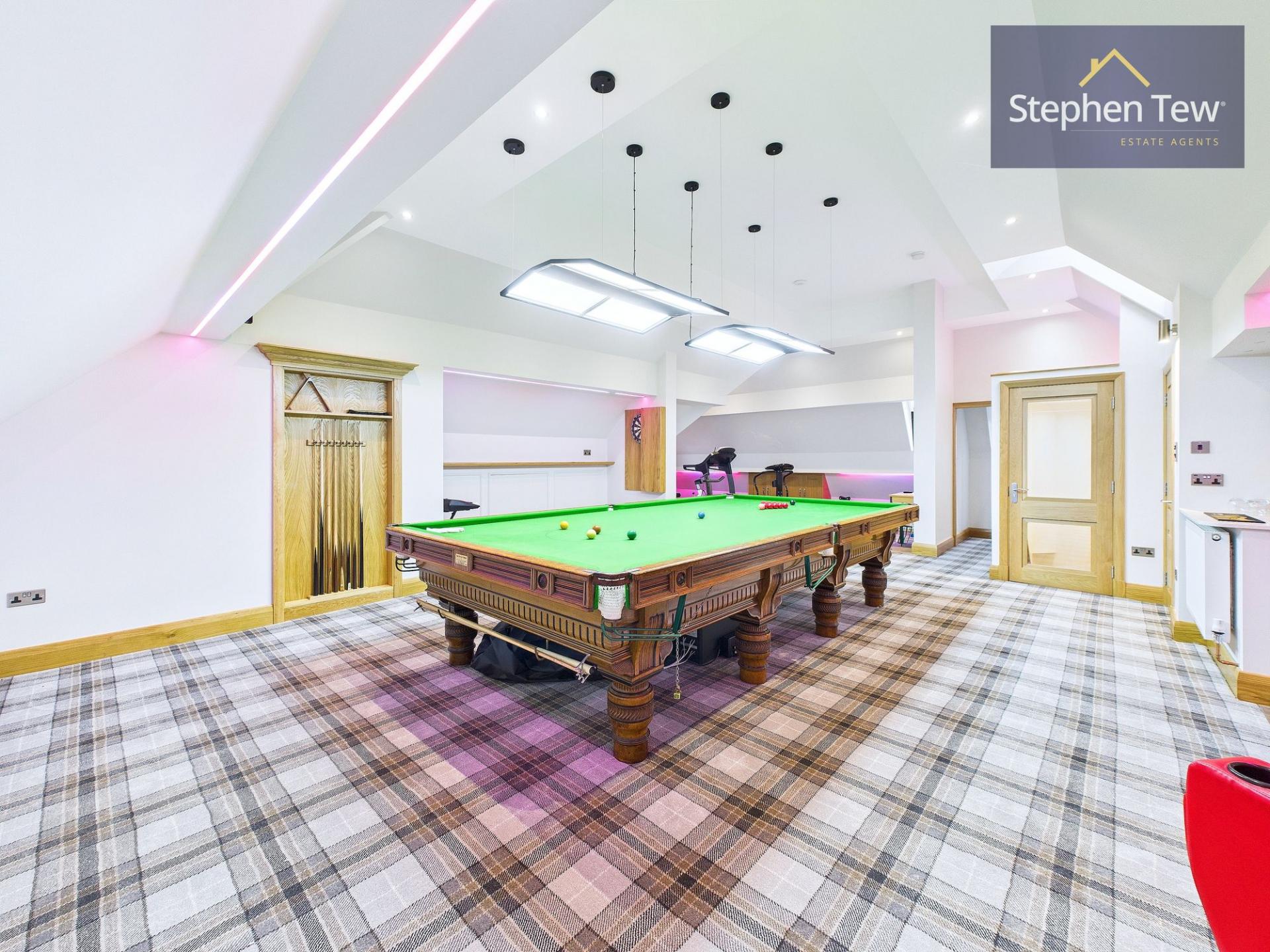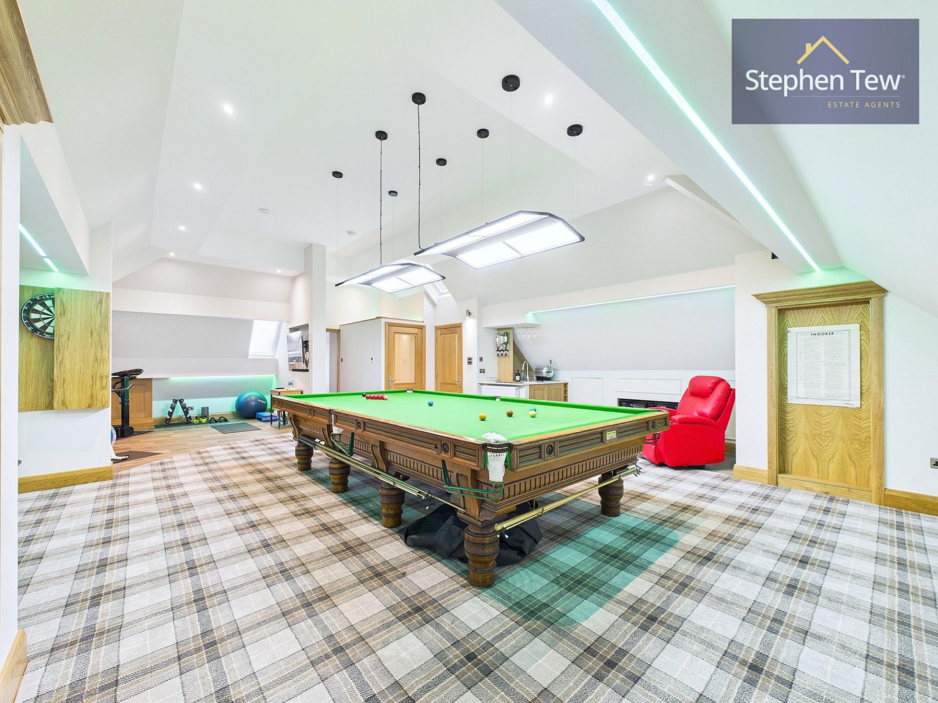 - Stairs to 5th bedroom, Gym, Snooker room and Snug.