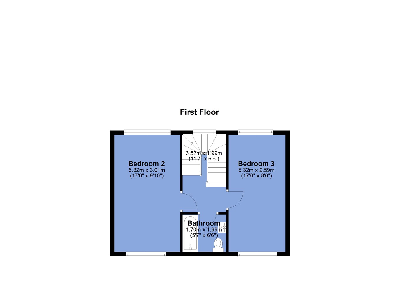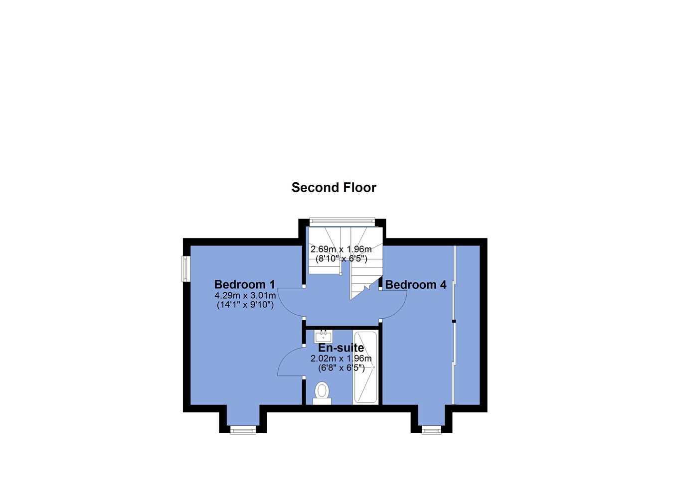 - Four double bedrooms arranged across the first and second floors