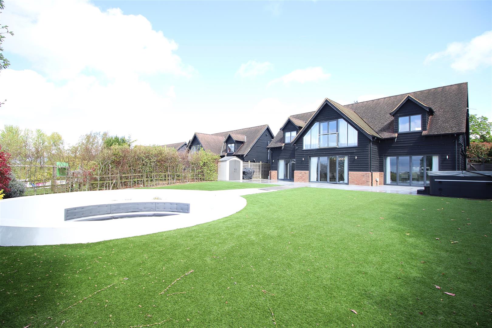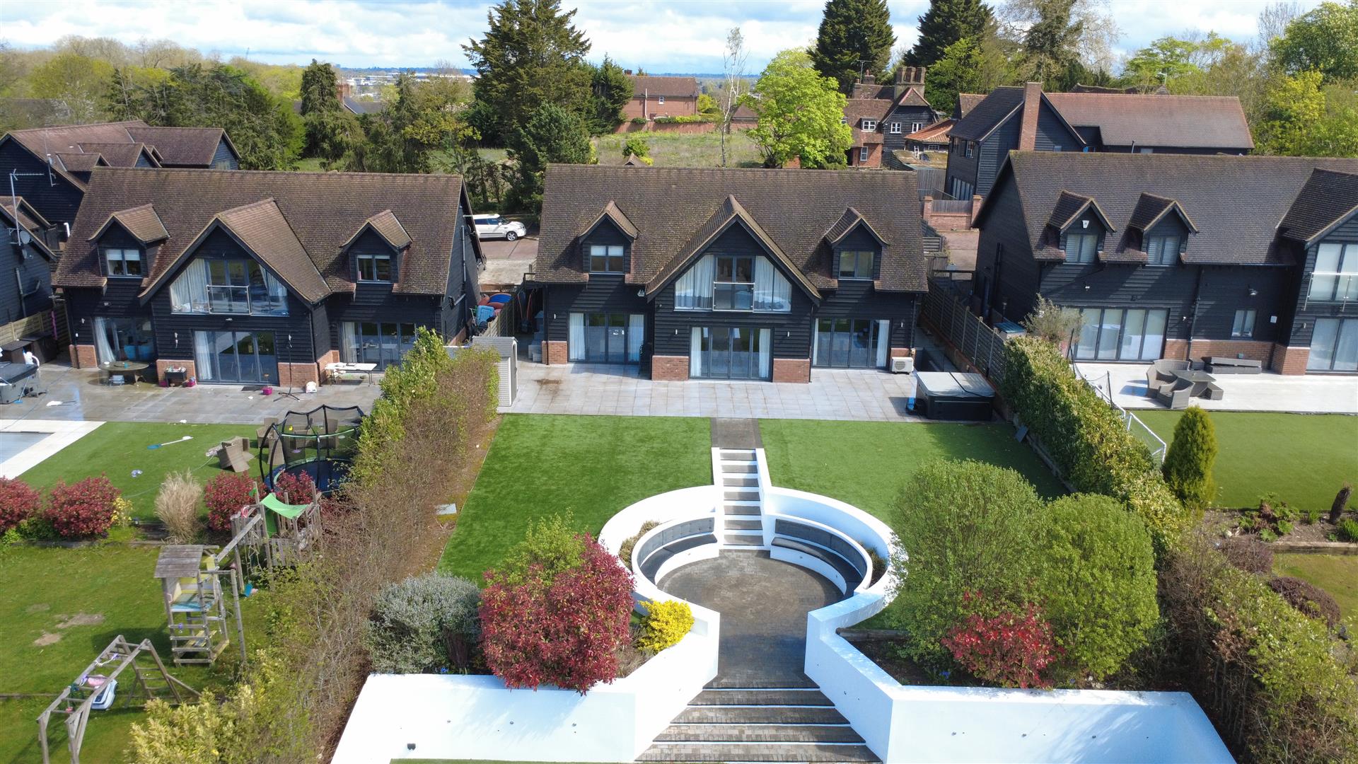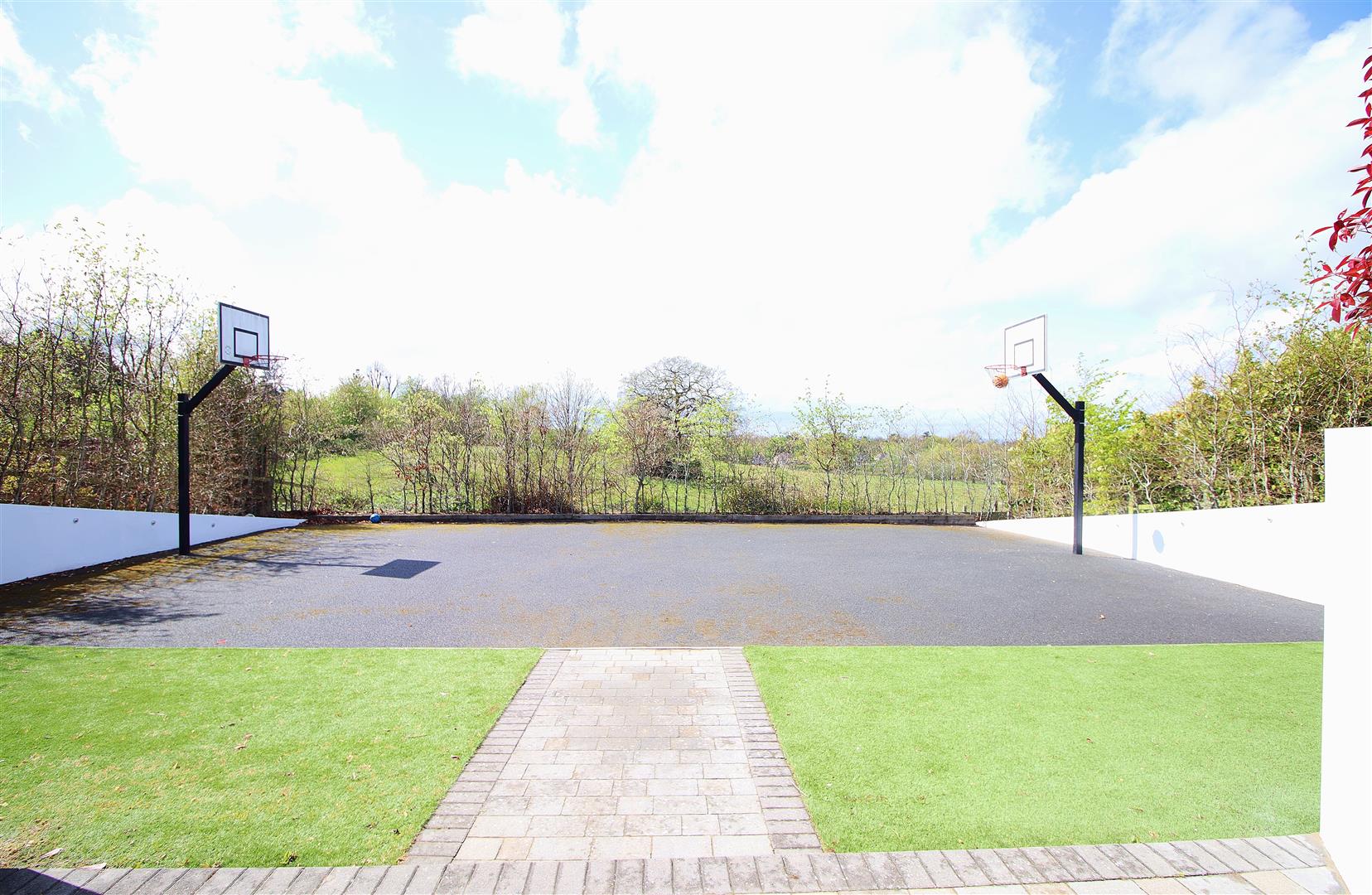 With parking for four vehicles, this home is not only spacious but also practical. This remarkable property is a rare find in a sought-after location, offering a perfect blend of luxury, comfort, and convenience. The stunning rear garden has been landscaped to include a built in circular seating area, a basketball court, large patio for entertaining or relaxing in the hot tub and a manicured lawn.
