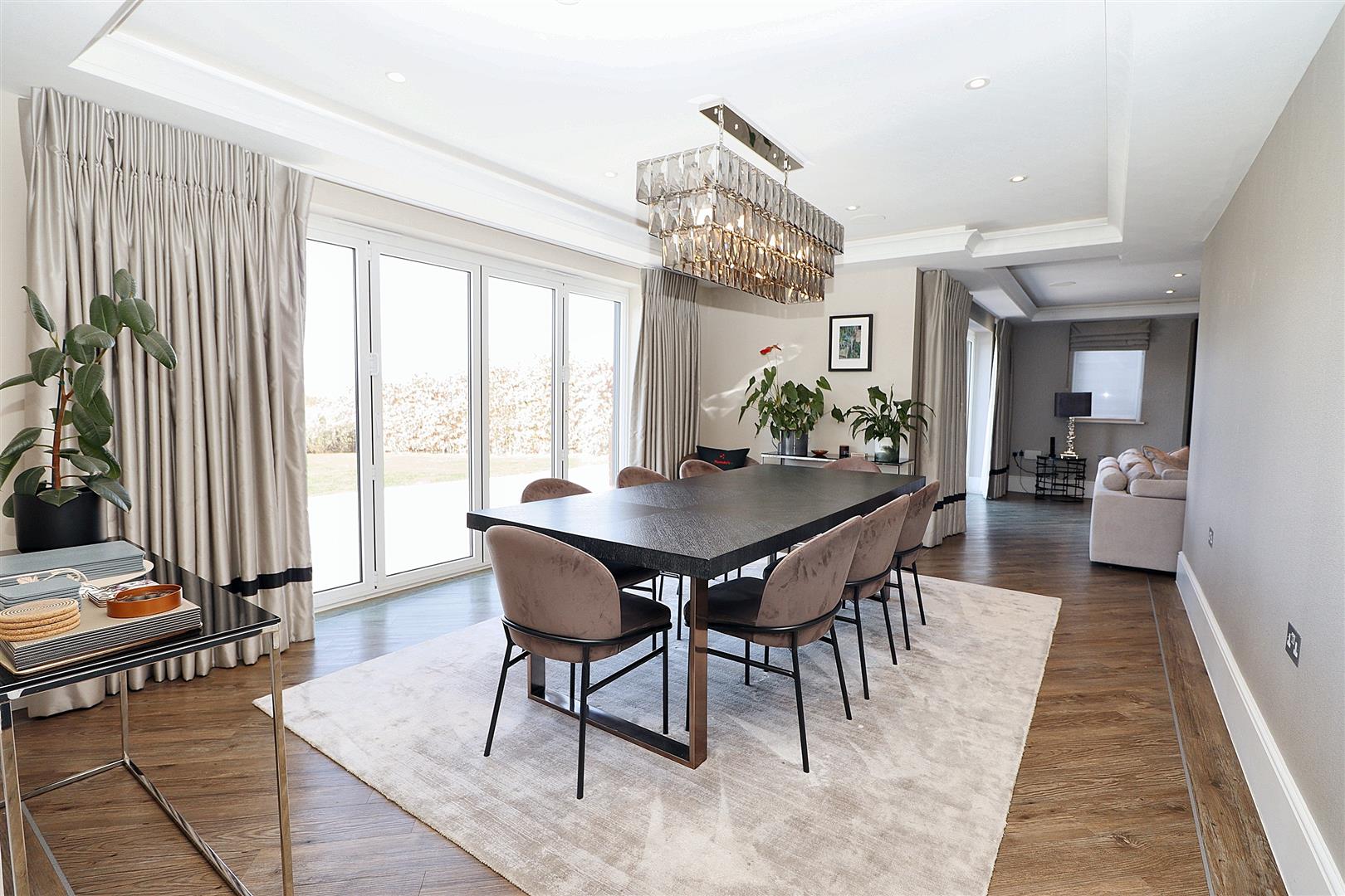 One of the standout features of this home is the entertainment floor, which includes a high-tech cinema, large entertainment room and a games/pool room, perfect for family movie nights or entertaining friends. The property also benefits from stunning countryside views, allowing residents to enjoy the beauty of nature from the comfort of their own home.