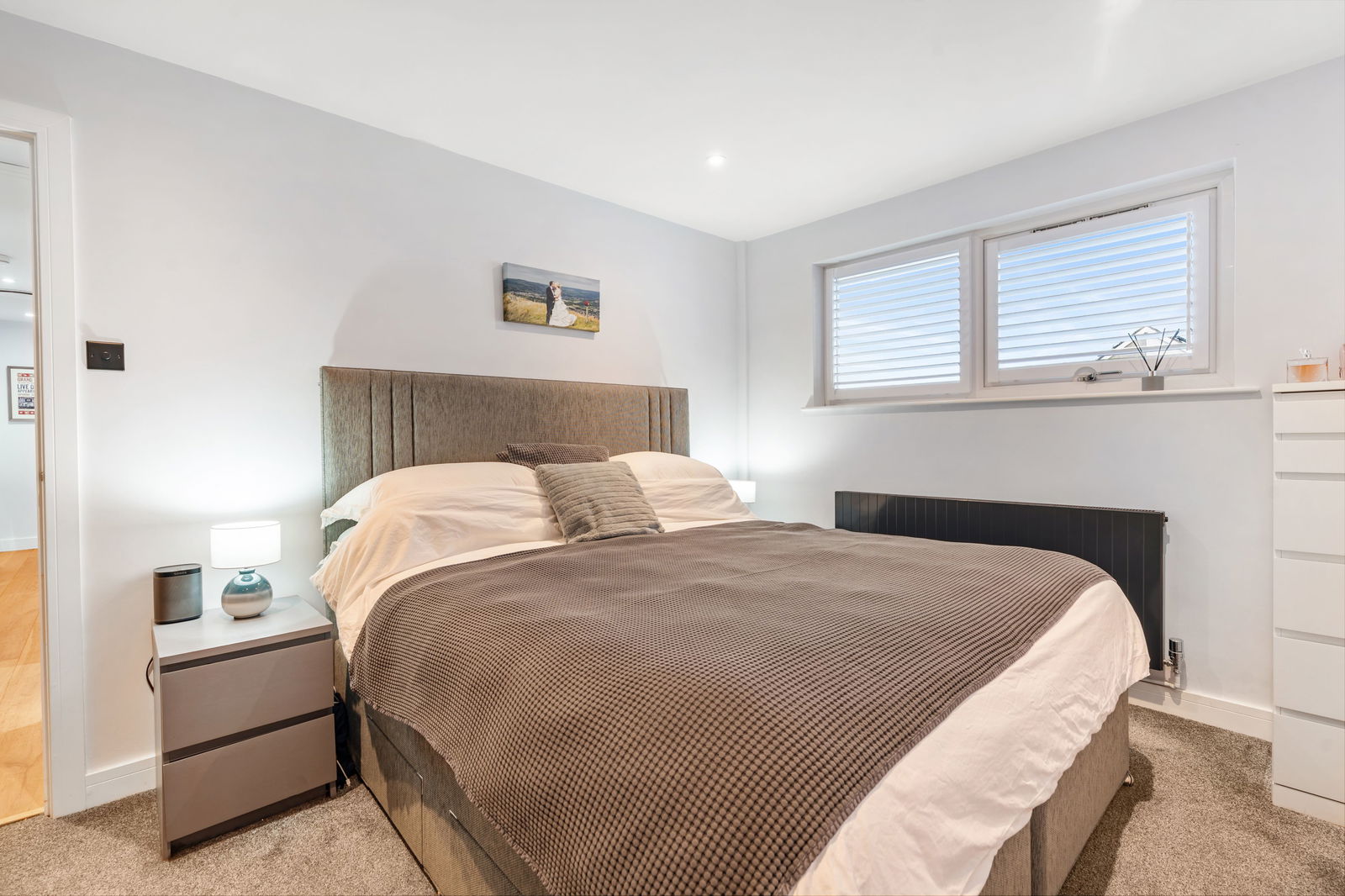 UPVC double glazed window to front with fitted shutters.  Radiator.
