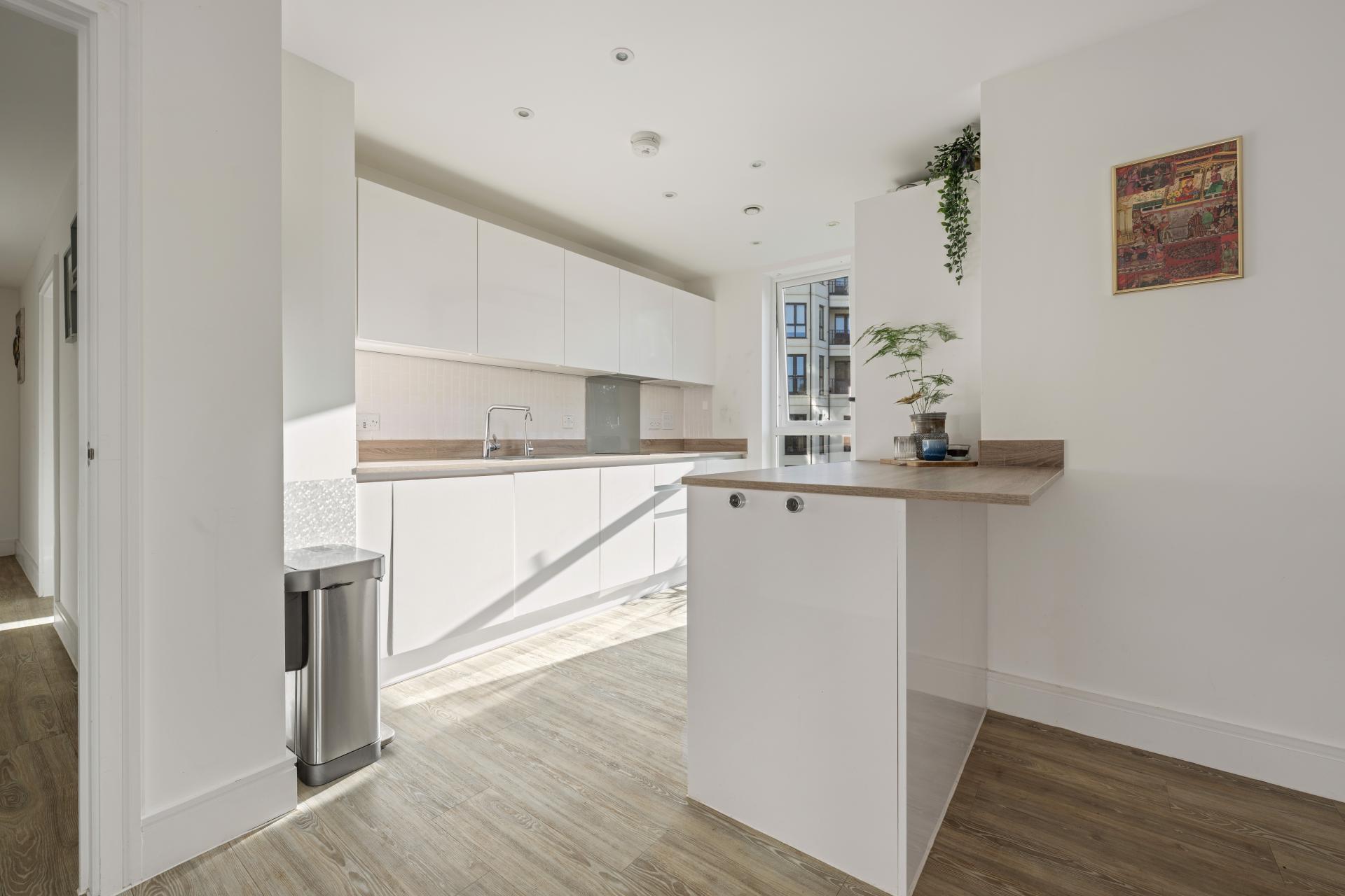 complementing the spacious layout. The entire flat is fitted with high-quality wooden flooring,