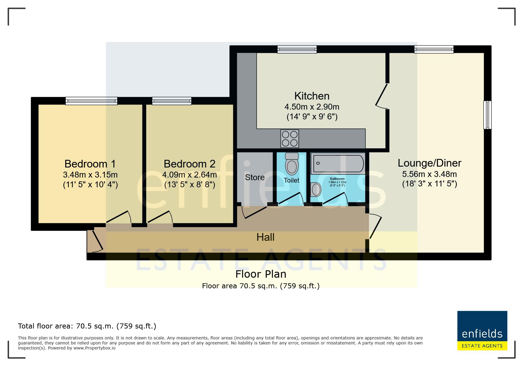 18' 3'' x 11' 5'' (5.56m x 3.48m)
