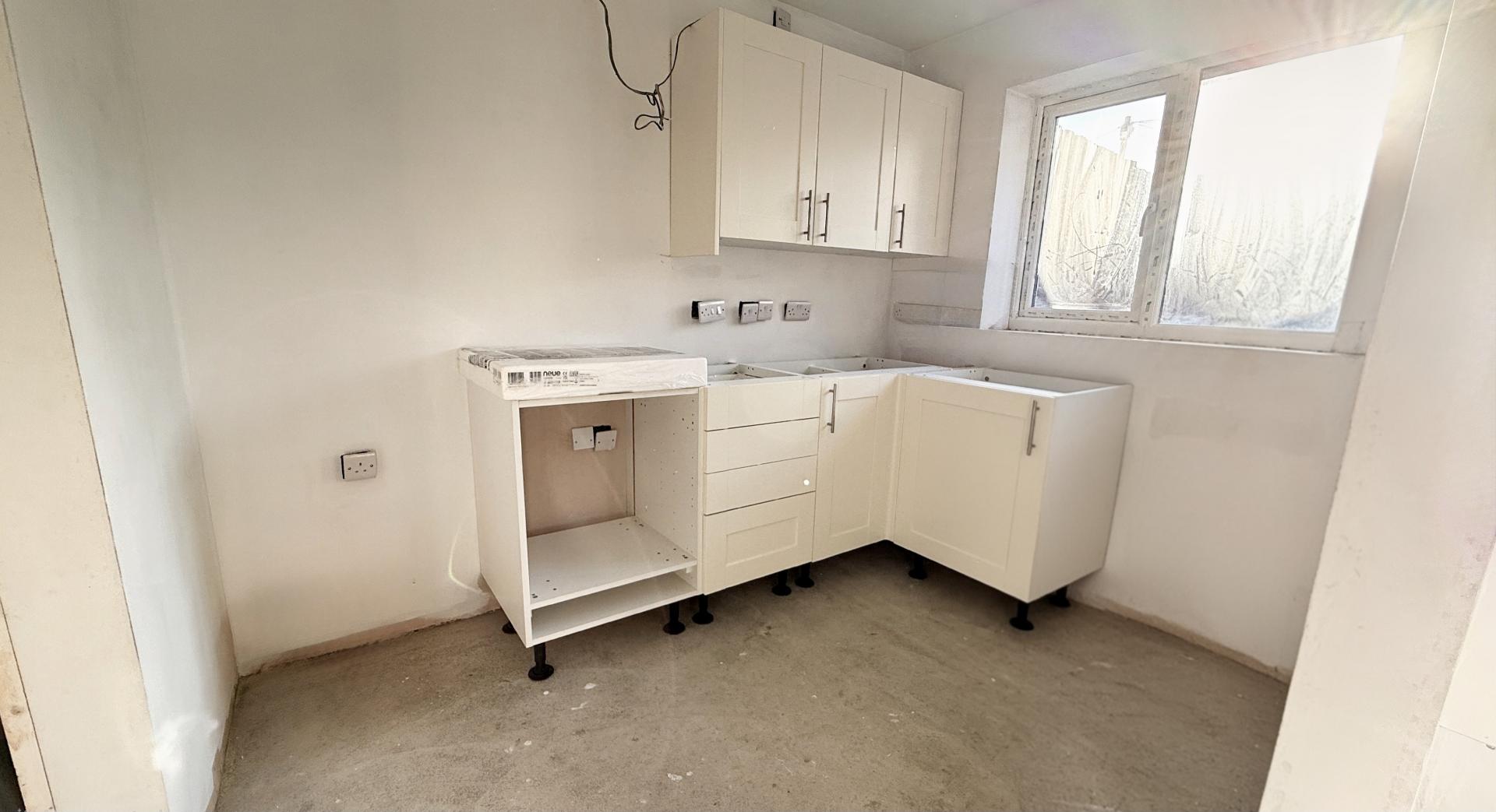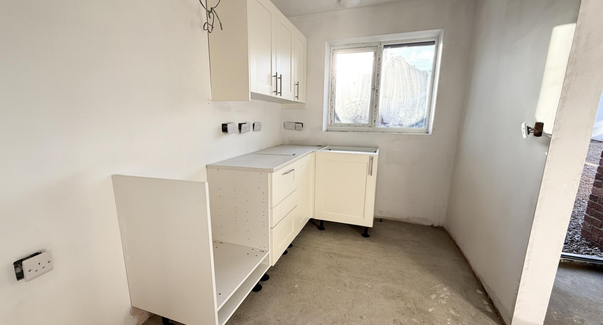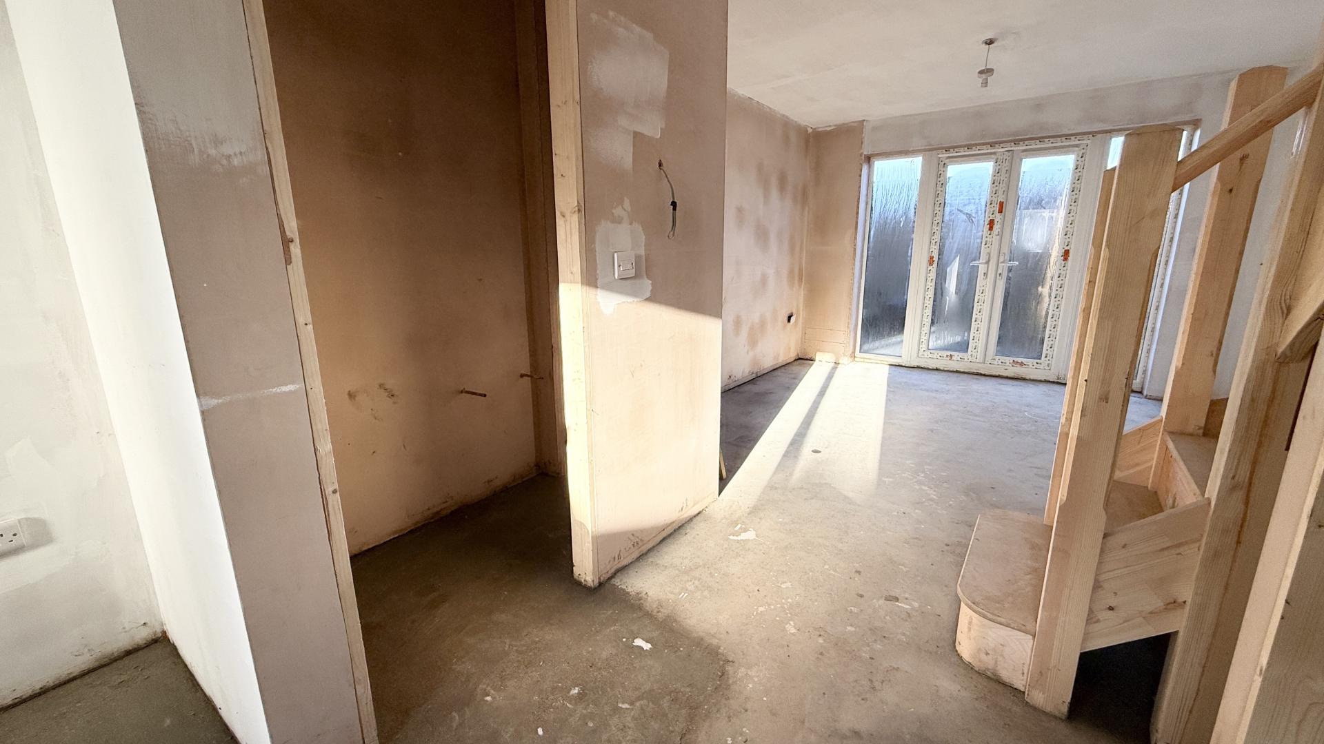 When finished, an entrance door will open into a hall with access to the kitchen. This room will be fitted with a range of units, four ring hob and an under-counter oven together with space for additional appliances. The living room has casement doors opening onto the garden and a turning staircase rising to the first floor with a useful storage cupboard under. The ground floor is further served by a cloakroom suite.