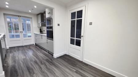 From the entrance hall, a turning staircase rises to the first floor and doors lead to the adjoining rooms. The living room has a feature fireplace and double casement doors leading to the conservatory/reception room. This room is double aspect with windows to rear and side together with double doors opening onto the garden. The roof has also been recently insulated. The kitchen has been re- fitted with range of matching units, fitted four ring hob and an under-counter oven together with a dishwasher and spaces for additional appliances. Open access leads to another reception room which is currently being used as a dining room. The ground floor is further served by a cloakroom.