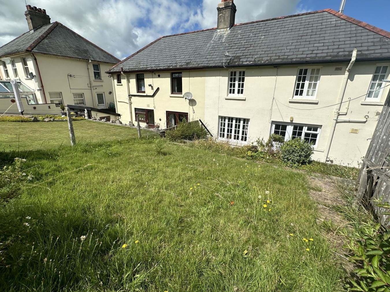 This four-bed semi-detached house is in a convenient location within walking distance to the town centre. On the ground floor there is an entrance hall, light and airy living room with open fireplace and kitchen/diner which has a range of fitted cupboards and an oil fired Rayburn. Upstairs there are four bedrooms, three of which are doubles, a wet room, bathroom and separate WC. Outside the property enjoys large lawned gardens which are gently sloping. There is also a patio area a garage and parking. In need of modernising the property has lots of potential to be a wonderful family home. Viewing recommended.