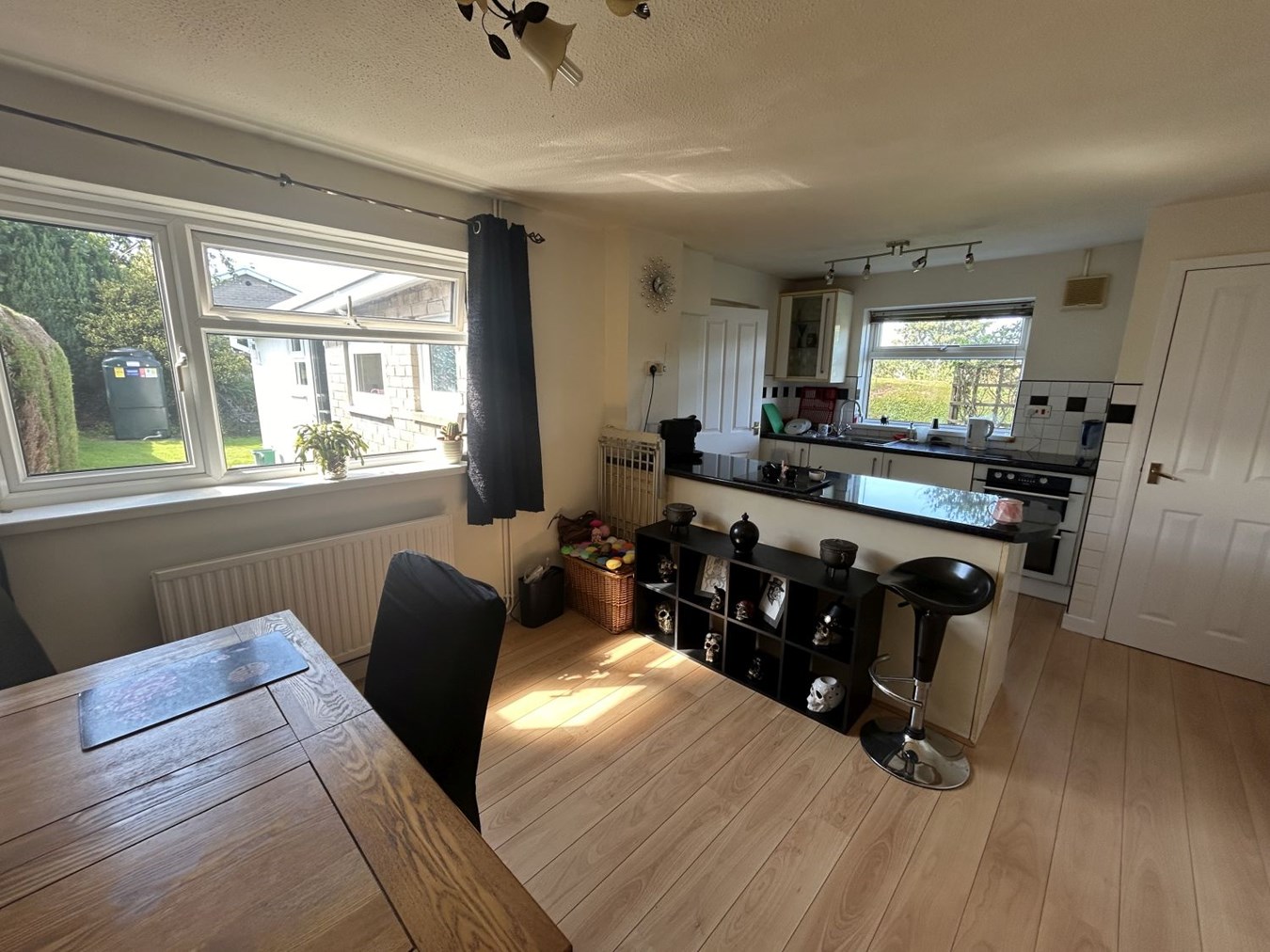 This three bed, semi-detached house is a great family home which occupies a good-sized corner plot. On the ground floor there is an entrance hall, living room and kitchen/diner with fitted base and wall units, breakfast bar and integrated hob and oven. Off the kitchen/diner is a shower room, WC, utility and integral garage. Upstairs there are three bedrooms and a bathroom. Outside at the front of the house there is a lawned area with paved path. At the rear there is a concrete drive leading to a garage, lawn, graveled area, shrub and flower borders and greenhouse. The property also benefits from oil fired central heating and uPVC double glazing.