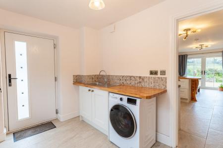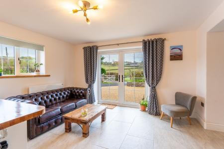 This superbly extended and modernised home offers spacious, versatile and beautifully presented accommodation, perfect for family living and those seeking a touch of countryside charm. On the ground floor, a practical utility room with sink, plumbing for a washing machine and plenty of space for coats and wellies provides the ideal everyday entrance, with a handy cloakroom off. The delightful kitchen/diner is fitted with a range of stylish cupboards, wooden worktops, a range cooker, ceramic sink and integrated dishwasher. Patio doors open to the front, filling the space with light, while French doors connect seamlessly with the generous living room. Here, a feature fireplace with wood-burning stove creates a warm and inviting focal point and there’s also an understairs cupboard offering useful storage. Upstairs are four well-proportioned bedrooms, two of which enjoy striking vaulted ceilings with exposed beams, adding real character. Completing the accommodation is an attractive family bathroom and a separate shower room. Outside, a large parking area leads to a range of outbuildings, including a substantial steel portal barn (13.75m x 27.54m), a garage/barn (8.88m x 8.85m) and a stone store (5.27m x 2.39m). The formal gardens wrap around the house and are made up of decorative chippings, a lawn and a patio seating area, ideal for entertaining or relaxing. The adjoining paddock offers scope for those wishing to keep ponies or other livestock, with a further 9 acres (approx.) are available by separate negotiation.