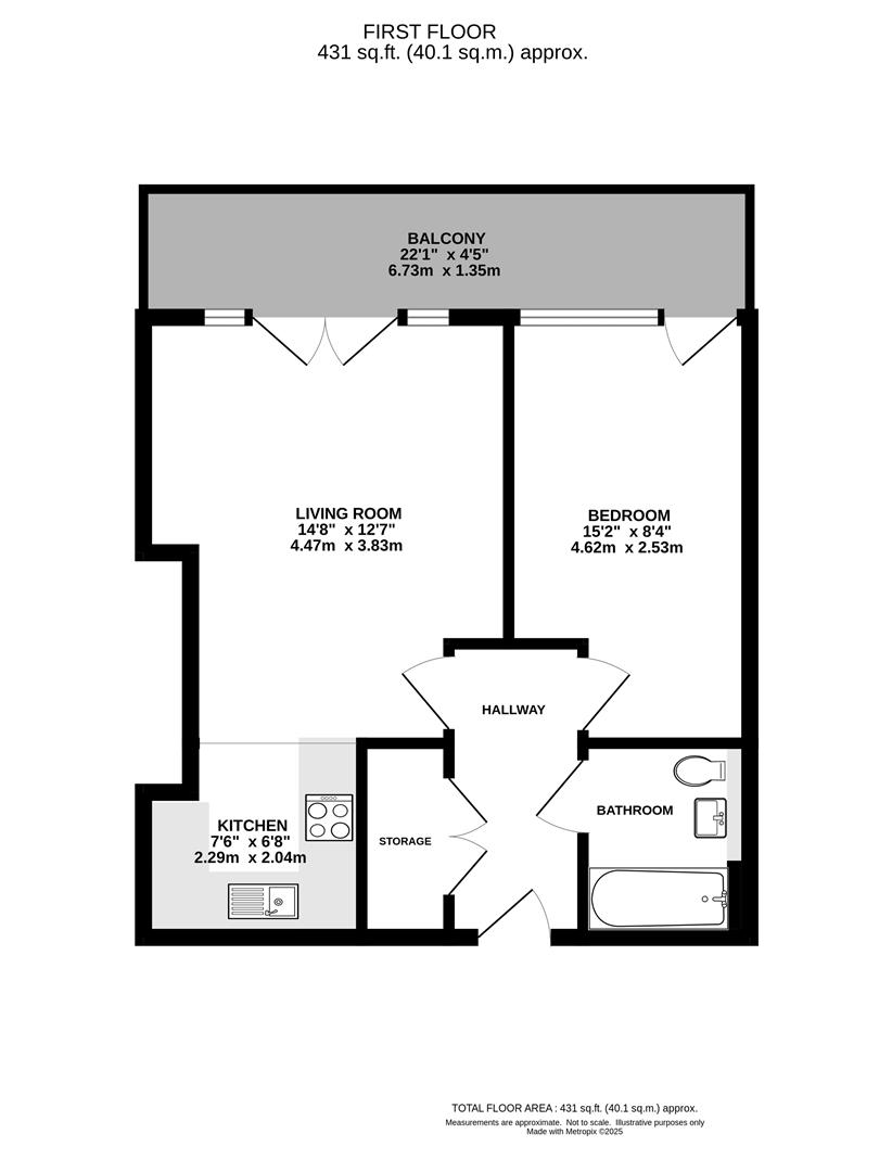 The well-planned interior features a spacious lounge that seamlessly connects to a sleek, fully fitted kitchen. From the lounge, French doors open onto a private balcony-ideal for relaxing outside. The generous double bedroom also enjoys direct access to the balcony, while a modern bathroom and ample built-in storage complete the layout.
