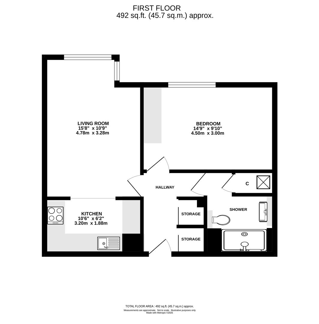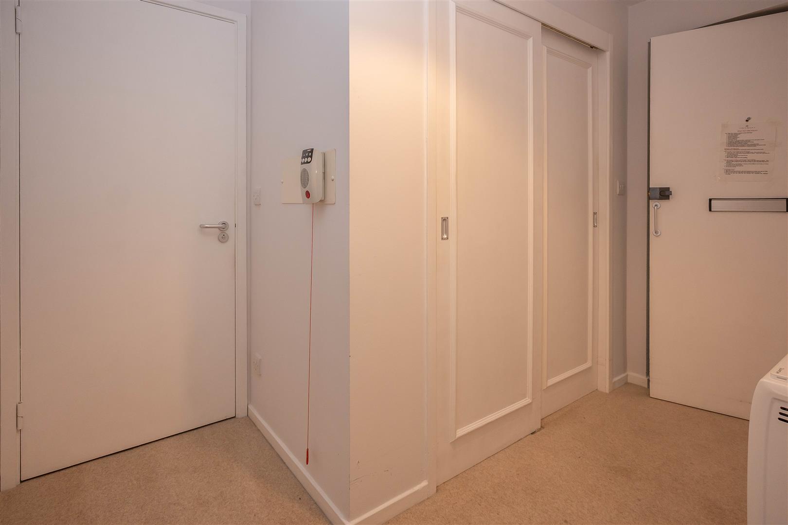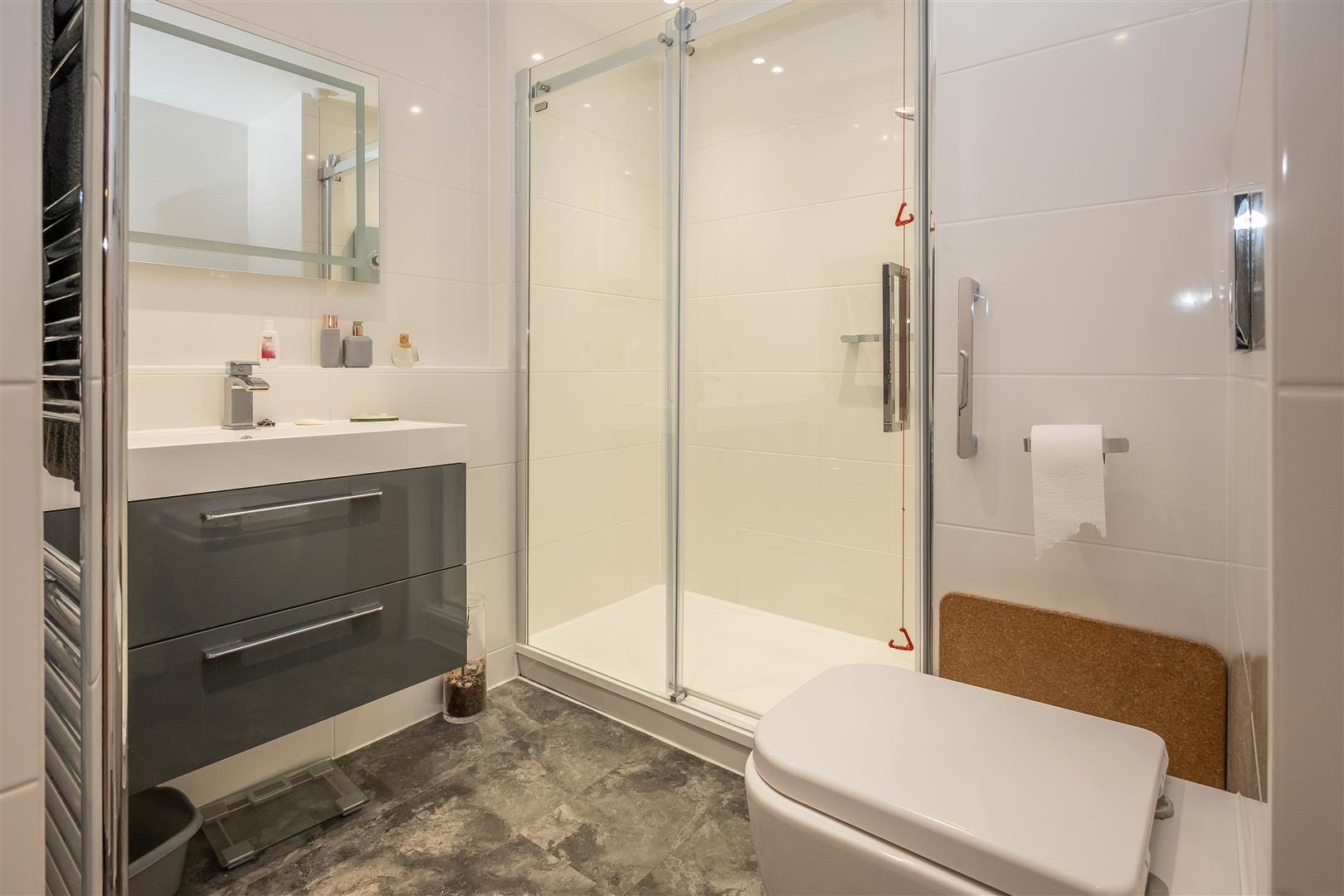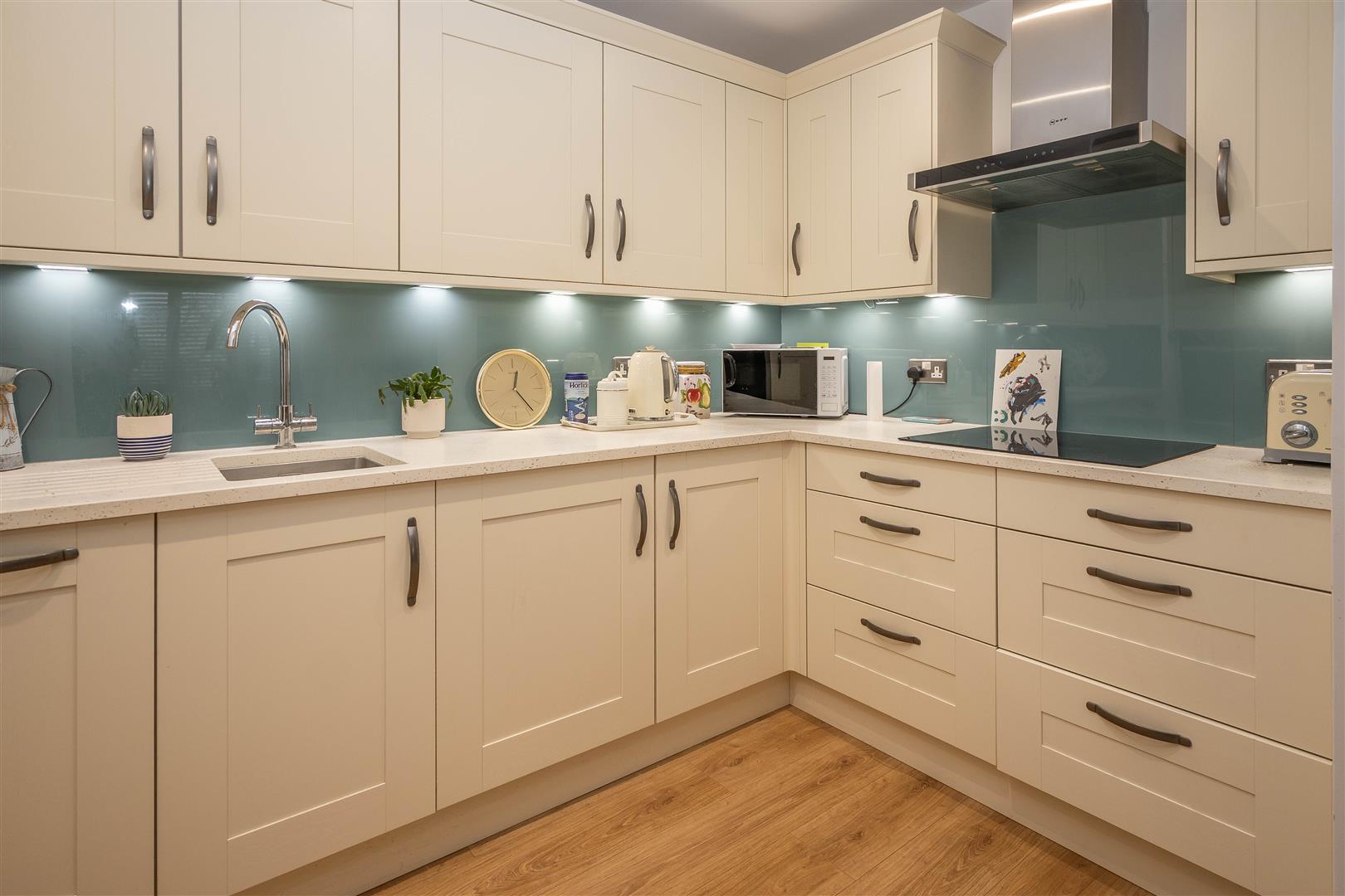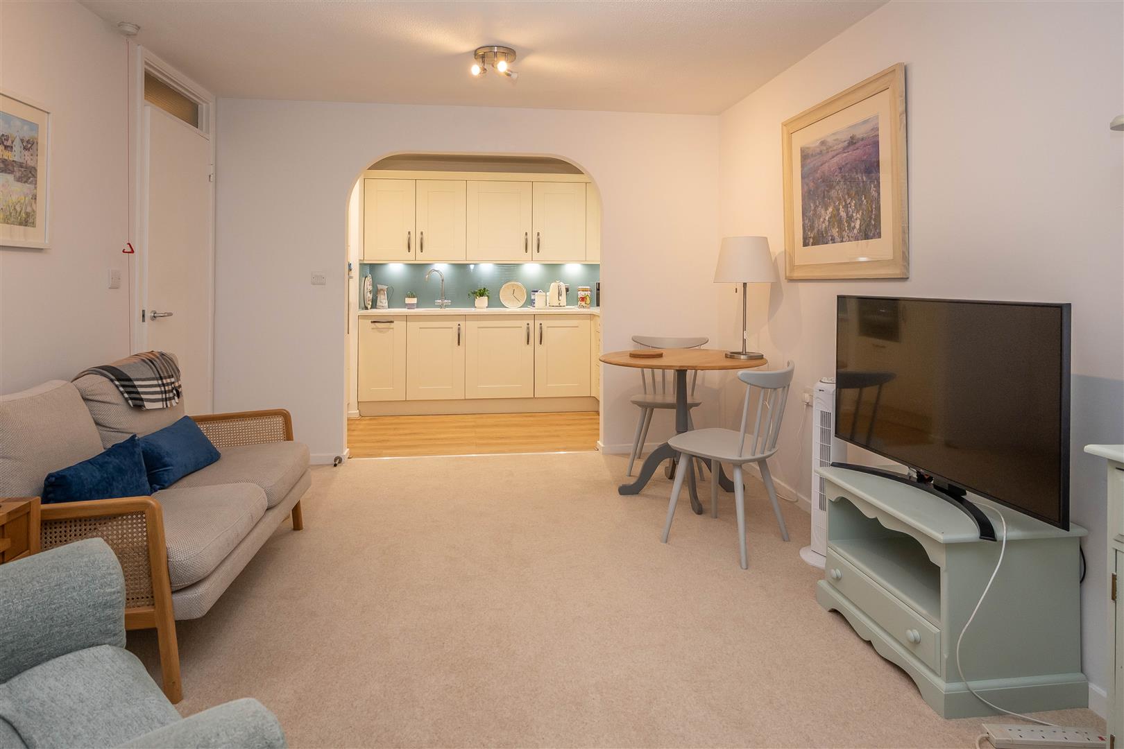 The apartment features a spacious lounge, double bedroom, shower room, and an entrance hallway with storage. It also benefits from a larger-than-average kitchen for this development, along with double-glazed windows.