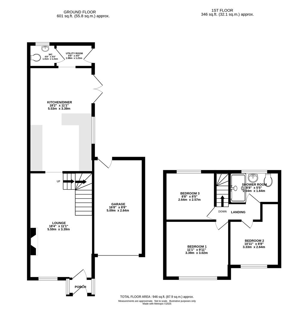 Upstairs, the first-floor landing leads to three well-proportioned bedrooms and a contemporary shower room.