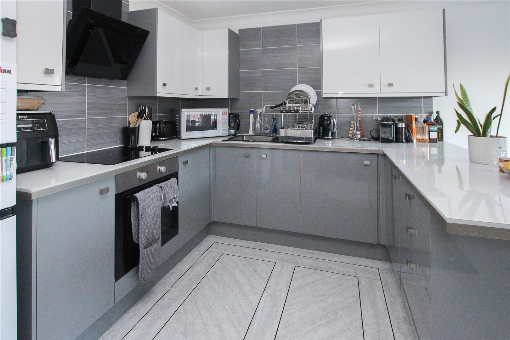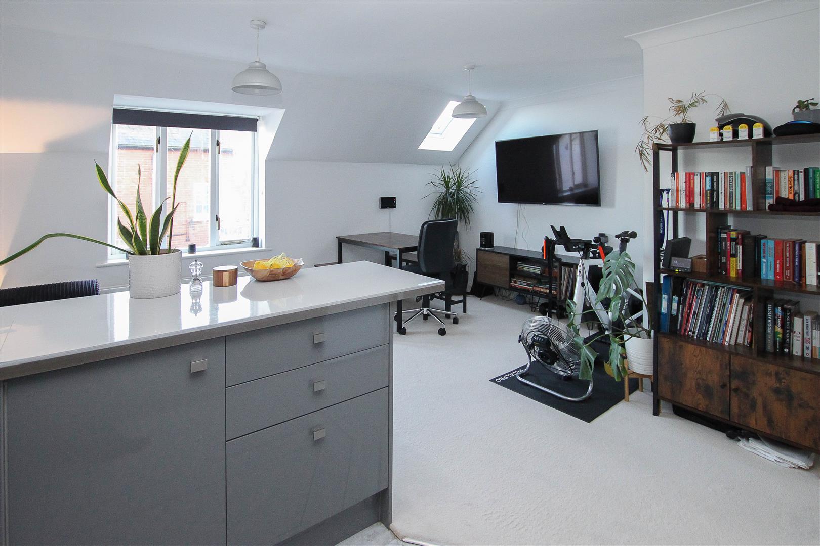 Open Plan Living Room / Kitchen - 4.98m x 4.80m (16'4 x 15'9) - Double-glazed window to front aspect and further skylight window. Fitted in an excellent range of high gloss wall and base units. Built-in electric oven, hob and extractor. Modern sink unit.
