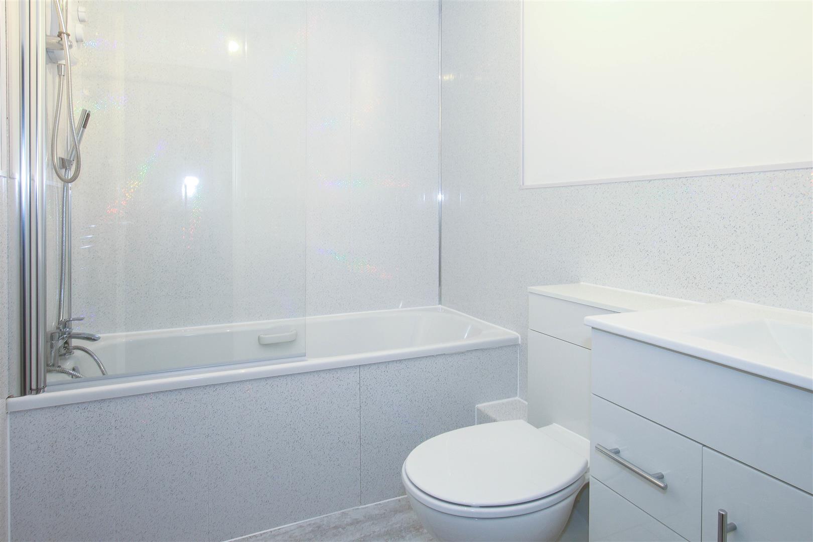 Bathroom - 2.29m x 1.68m (7'6 x 5'6) - Fitted in a three piece white suite, including vanity wash hand basin with cupboards under, close coupled wc and modern bath with separate electric shower unit over. Chrome towel rail. Extractor fan and shaver point.