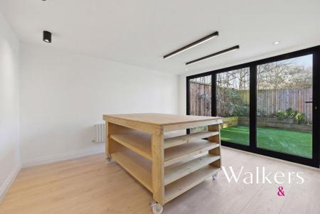 Positioned within the garden is a versatile outbuilding currently used as a garden room/studio, perfect for a home office, gym, hobby space, or additional entertaining area, with further storage also available.
