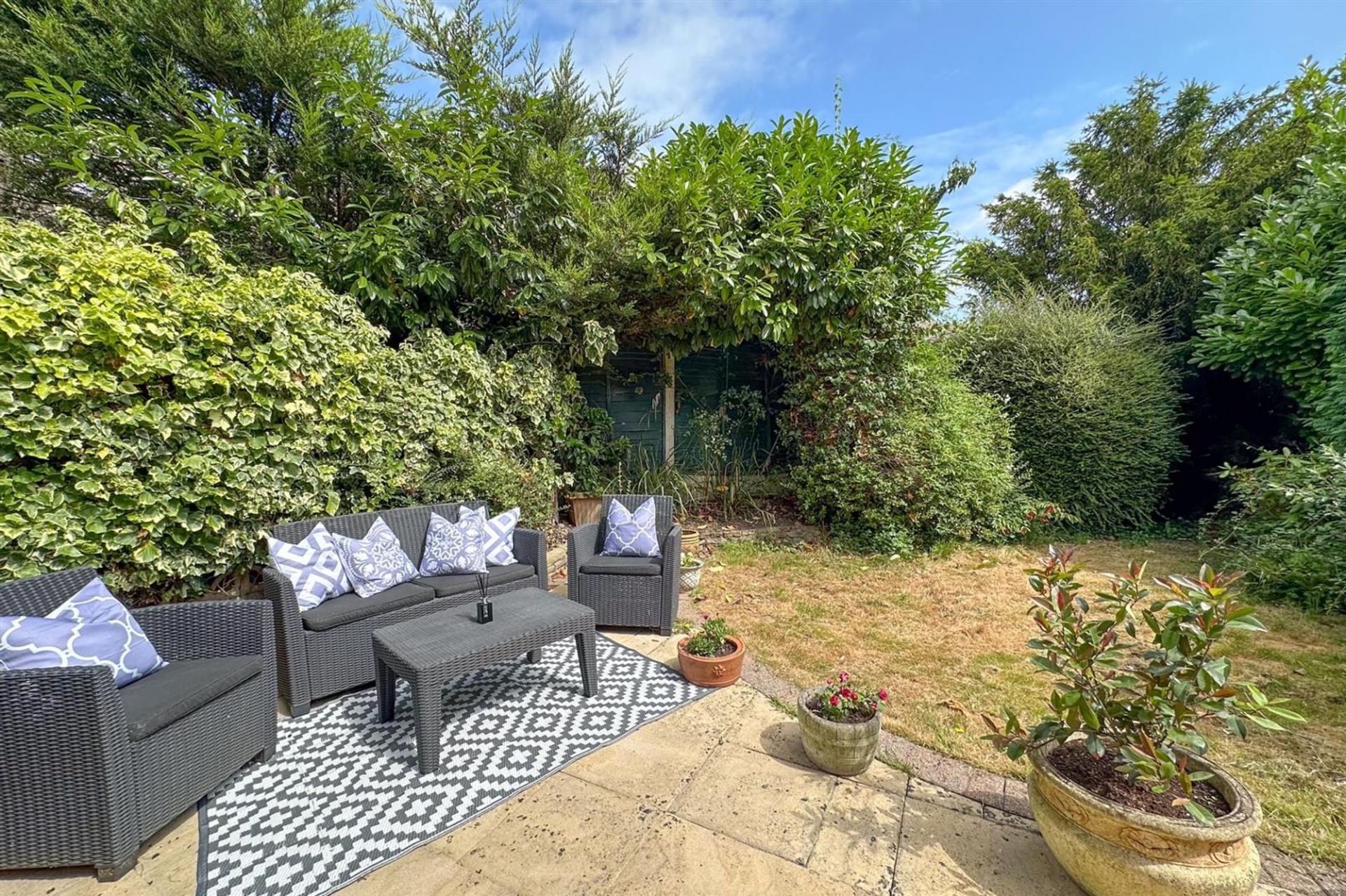 The rear gardens features a patio area with the remainder laid to lawn surrounded by mature trees and shrubs.