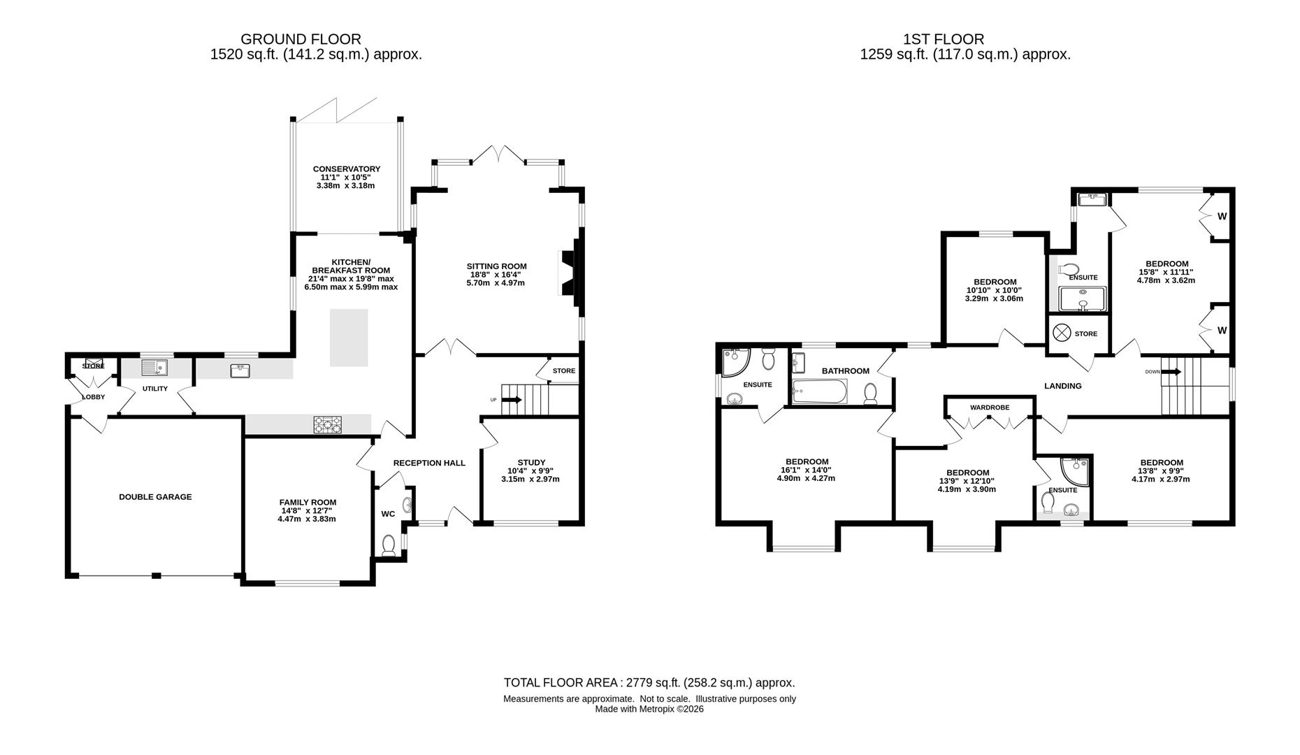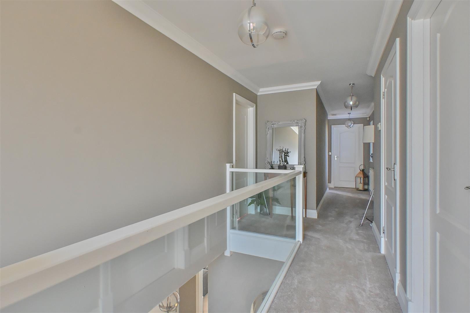 The first-floor landing provides access to all bedrooms. To the rear, there are two generous double bedrooms, one of which benefits from built-in wardrobes and a contemporary ensuite shower room. To the front, there are three further spacious double bedrooms, two featuring ensuite shower rooms, while the remaining bedroom offers built-in wardrobes. A modern family bathroom completes the first-floor layout.
