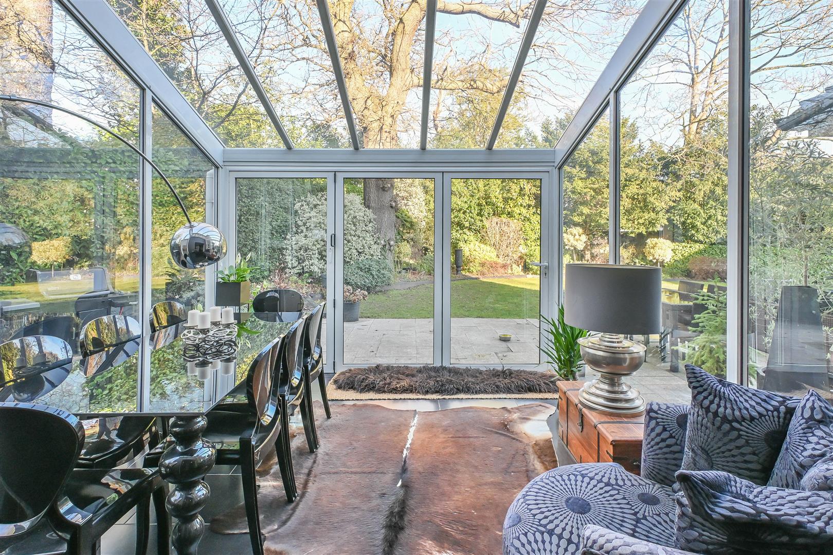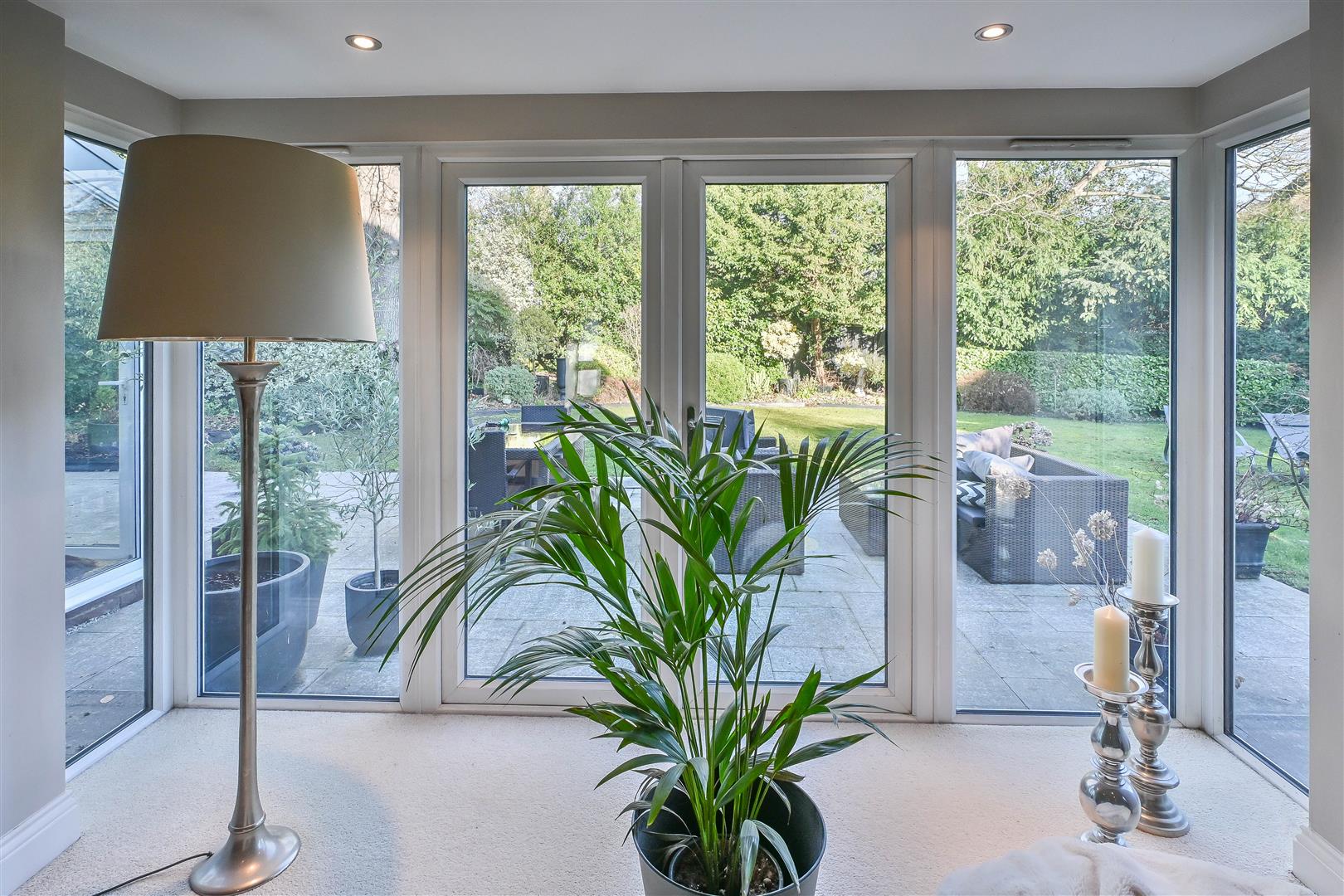 The internal accommodation opens with a welcoming entrance hall that immediately sets the tone for the quality and style found throughout the home. To the rear, a beautifully presented and generously proportioned sitting room is bathed in natural light, featuring a striking full wall of glazing with French doors opening onto the rear garden, complemented by additional side windows. The well-appointed kitchen is thoughtfully designed with sleek eye and base level units, contrasting worktops and a central island/breakfast bar, making it ideal for both everyday living and entertaining. This space flows seamlessly into a bright conservatory, surrounded by floor-to-ceiling glazing on three sides, creating an excellent setting for more formal dining. A separate utility room leads through to a practical lobby with built-in storage and direct access to the double garage. To the front of the property, an additional family room provides a comfortable and versatile space to relax, while a dedicated study offers the perfect environment for home working. A ground-floor cloakroom completes the accommodation on this level.