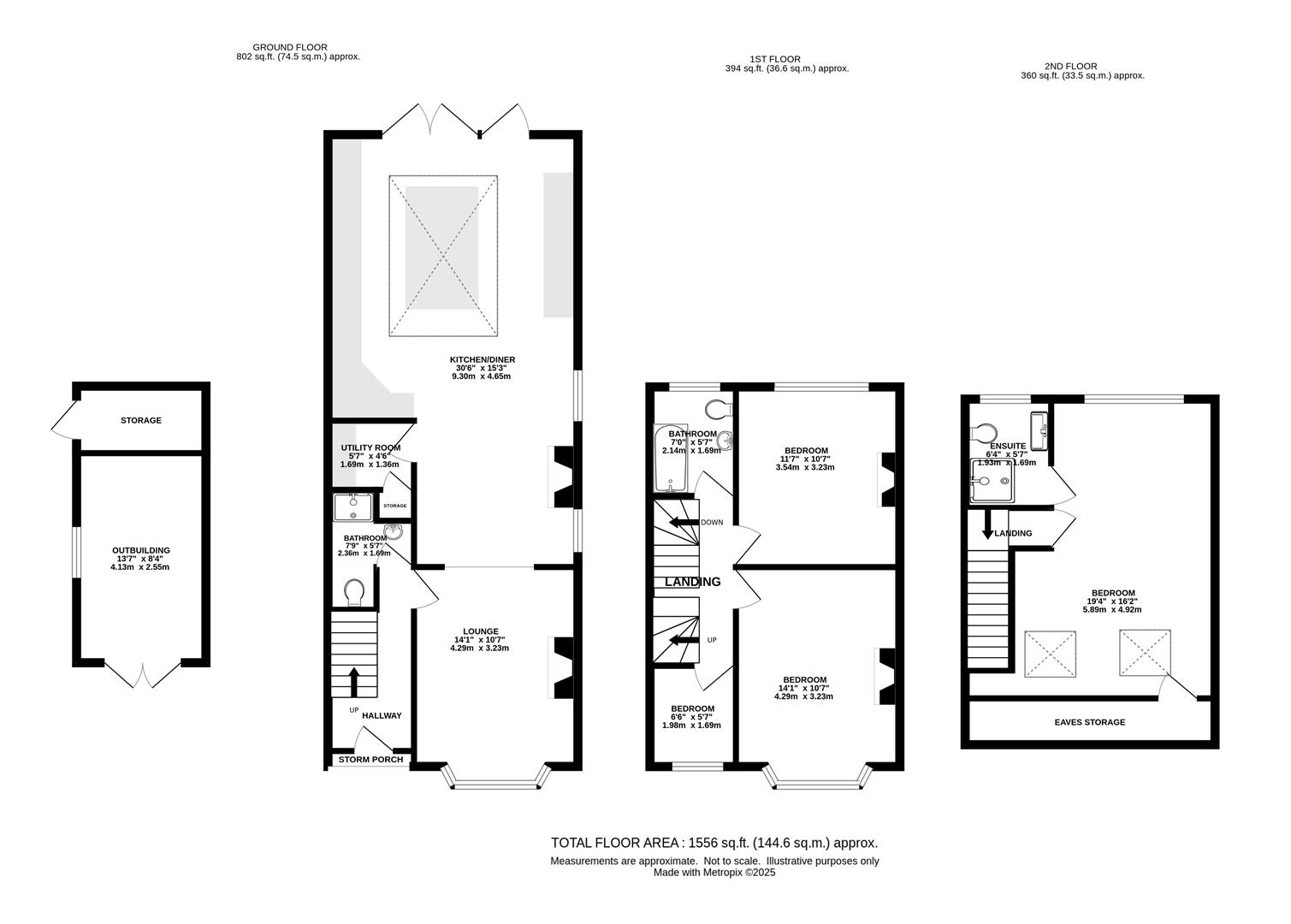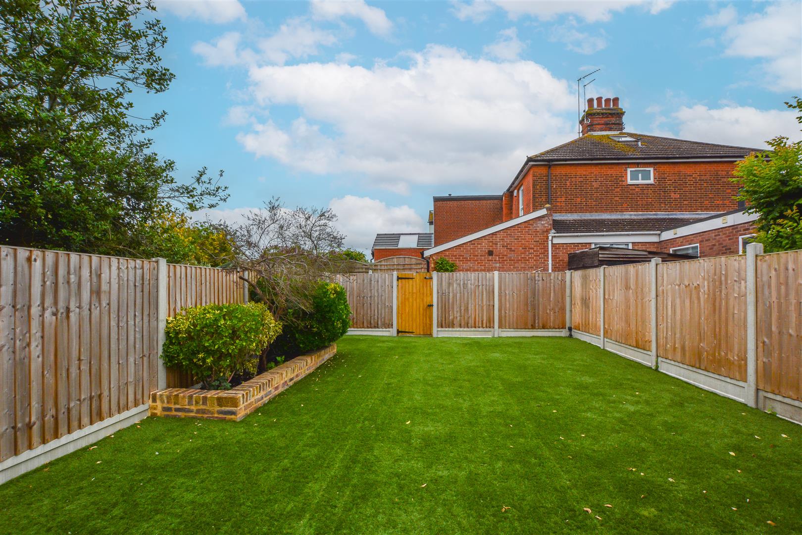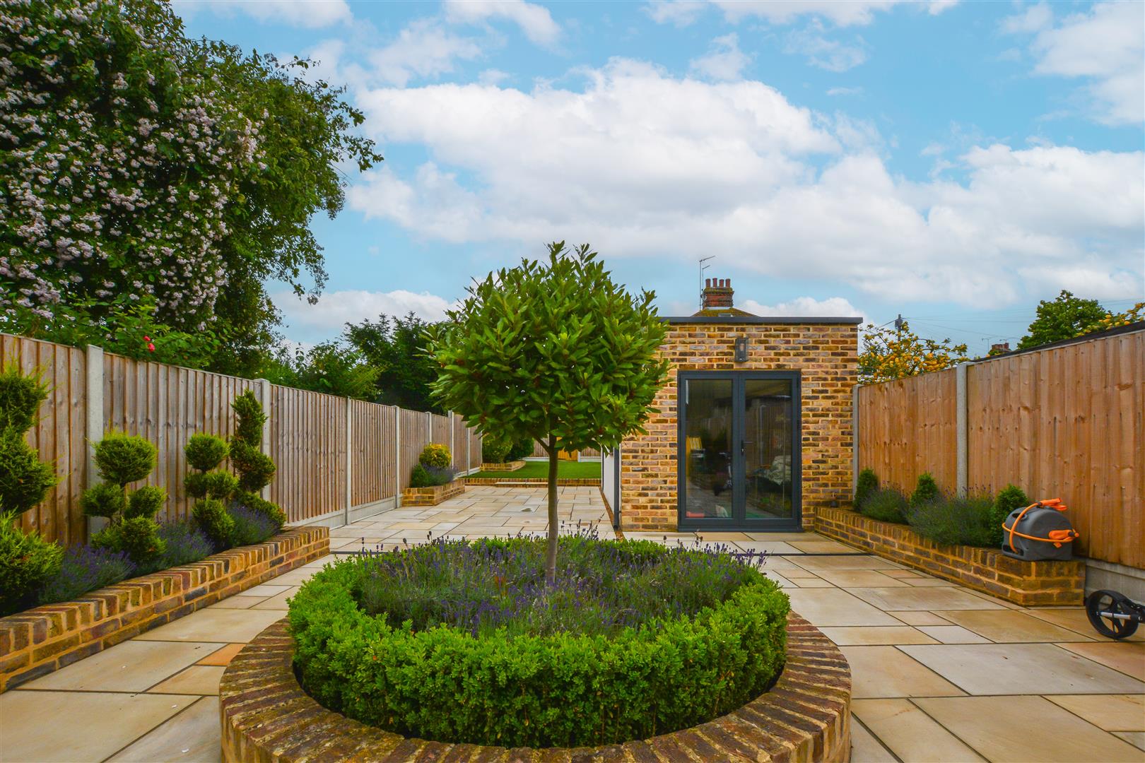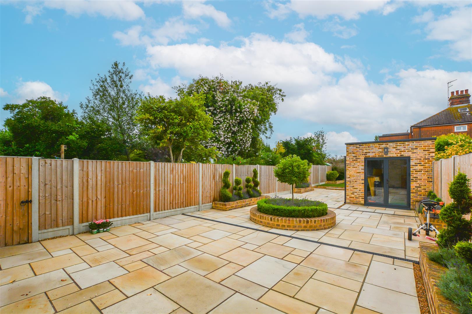 Outside, the large, landscaped garden begins with a generous paved patio-ideal for al fresco dining and entertaining. A brick-built outbuilding provides flexible use as a home office, gym, or garden bar, while a low-maintenance artificial lawn completes the space. To the front, a neat resin driveway offers convenient off-street parking.