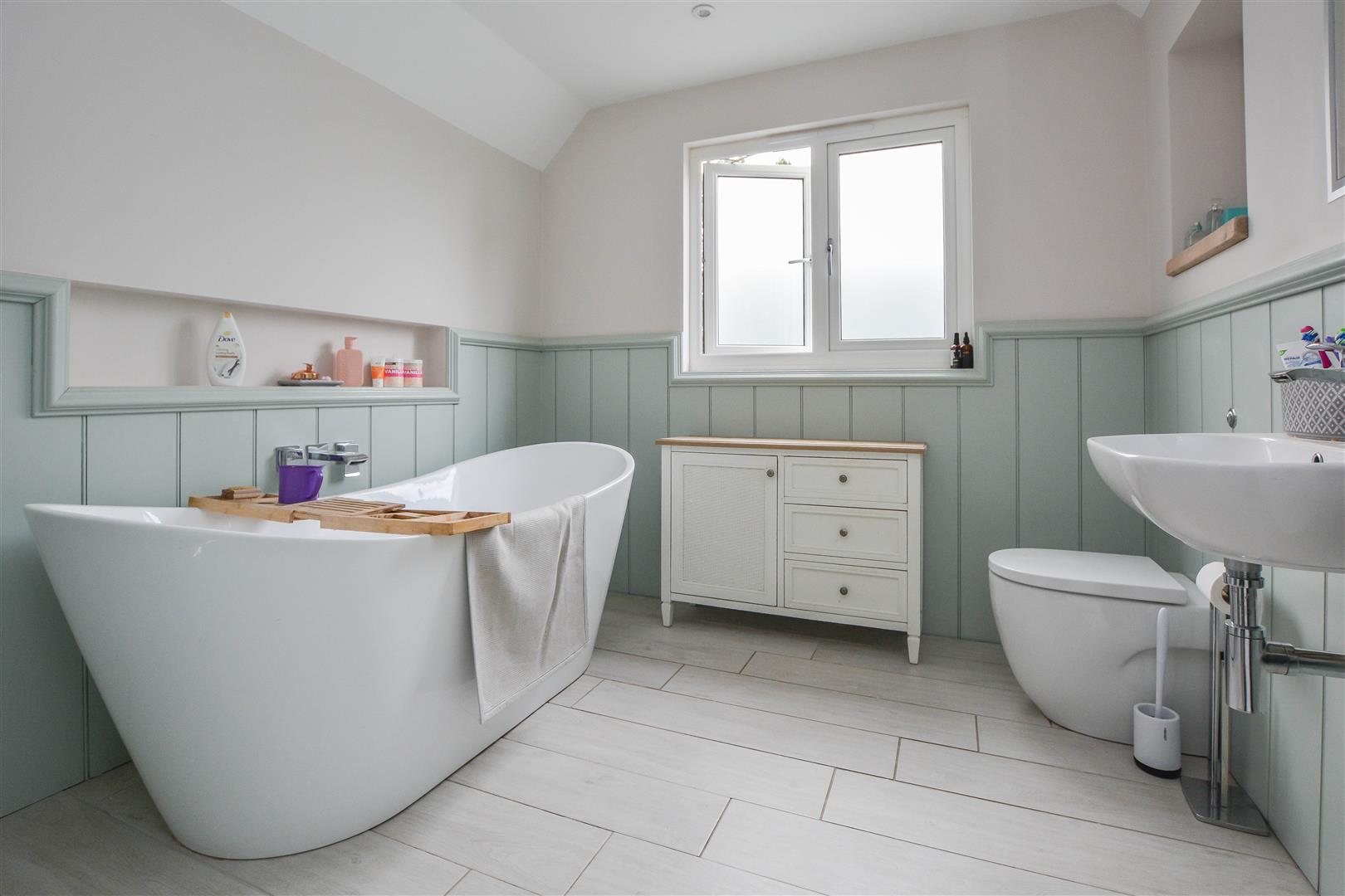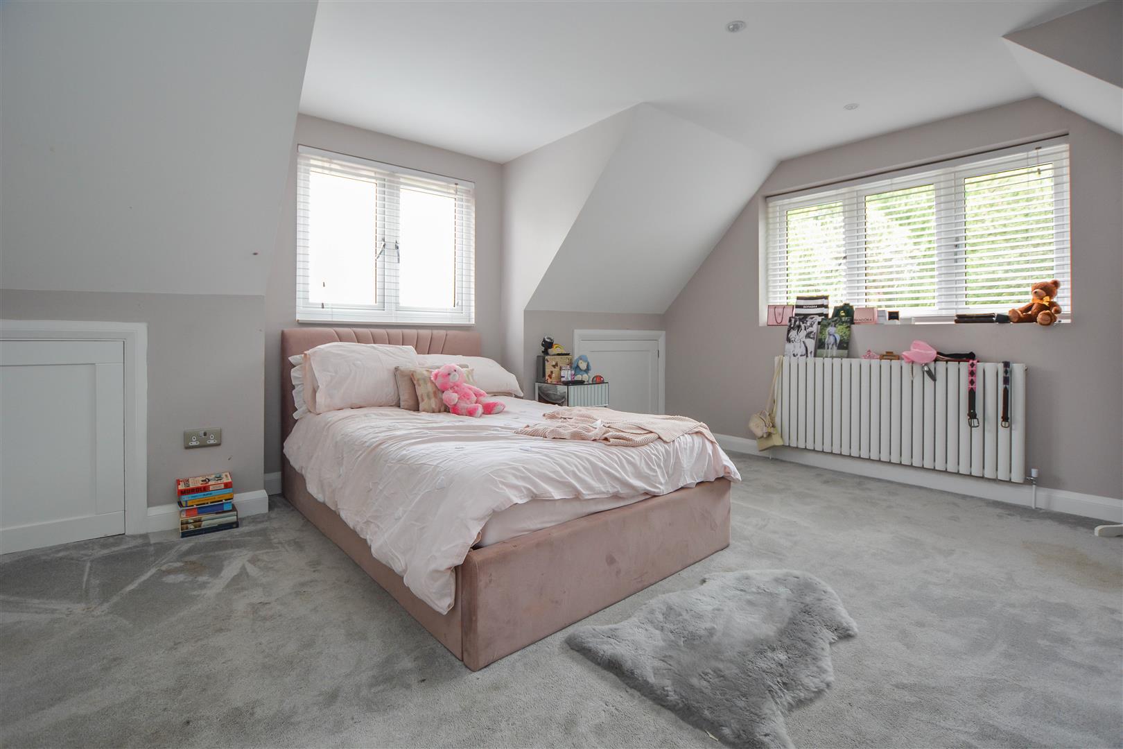 Ascending to the first floor, the landing leads to three double bedrooms, each offering useful eaves storage. One of these enjoys the benefit from a sleek ensuite shower room and a built-in wardrobe, while a beautifully appointed family bathroom completes the accommodation on this floor.