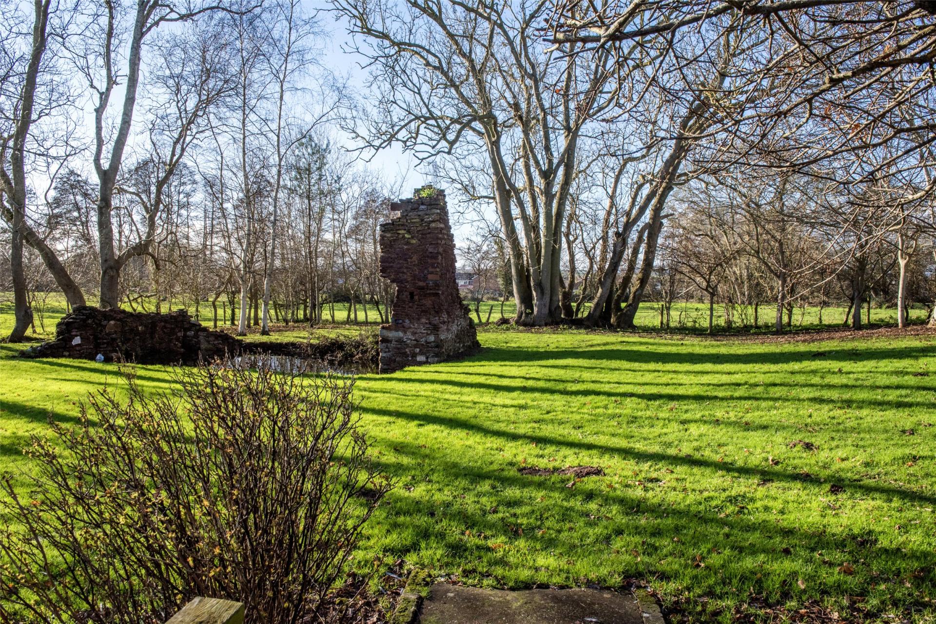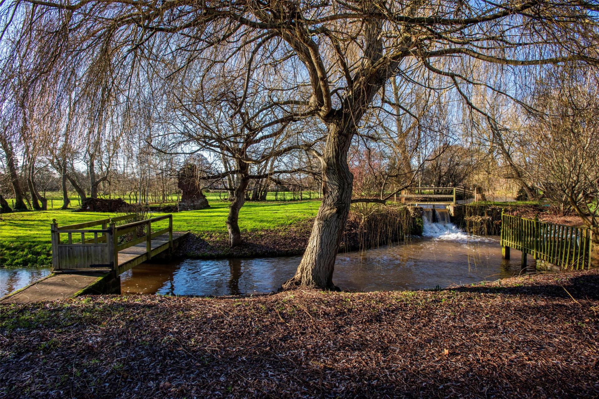 There are two areas of garden interconnected by foot bridges leading to grassed areas with established trees. In addition, there are the remains of the former millers cottage.