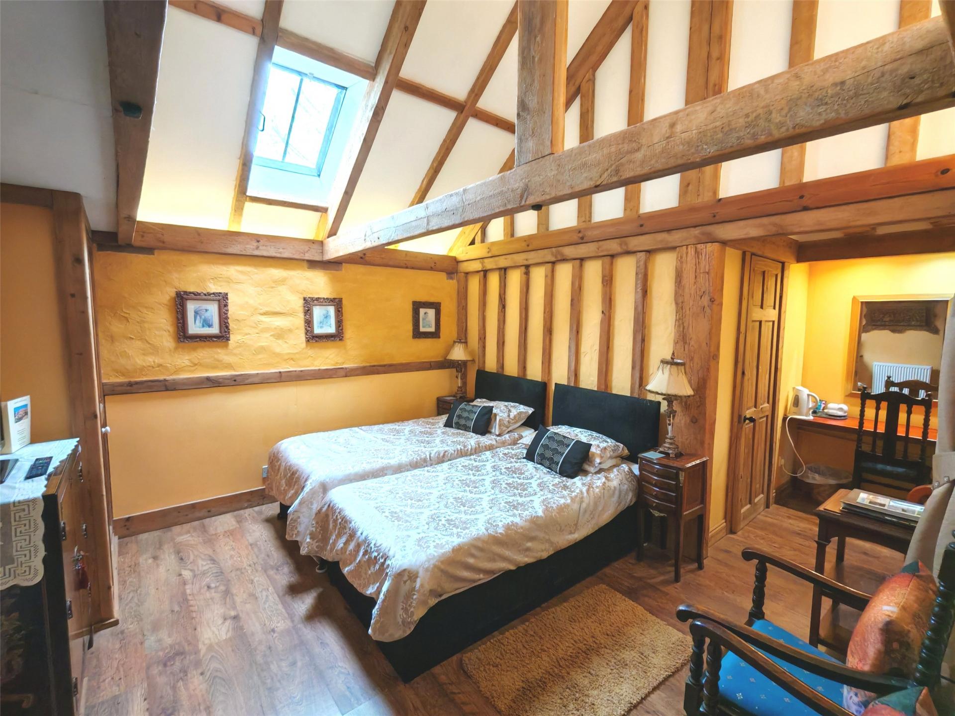 Designed to provide flexible living space combined with income generation the entrance to the main house is approached via a covered area with two self-contained large double bedrooms with en-suite bathrooms each room with its own unique theme providing a wealth of character and charm.
