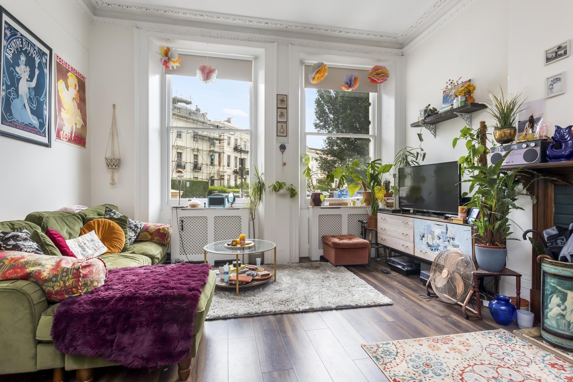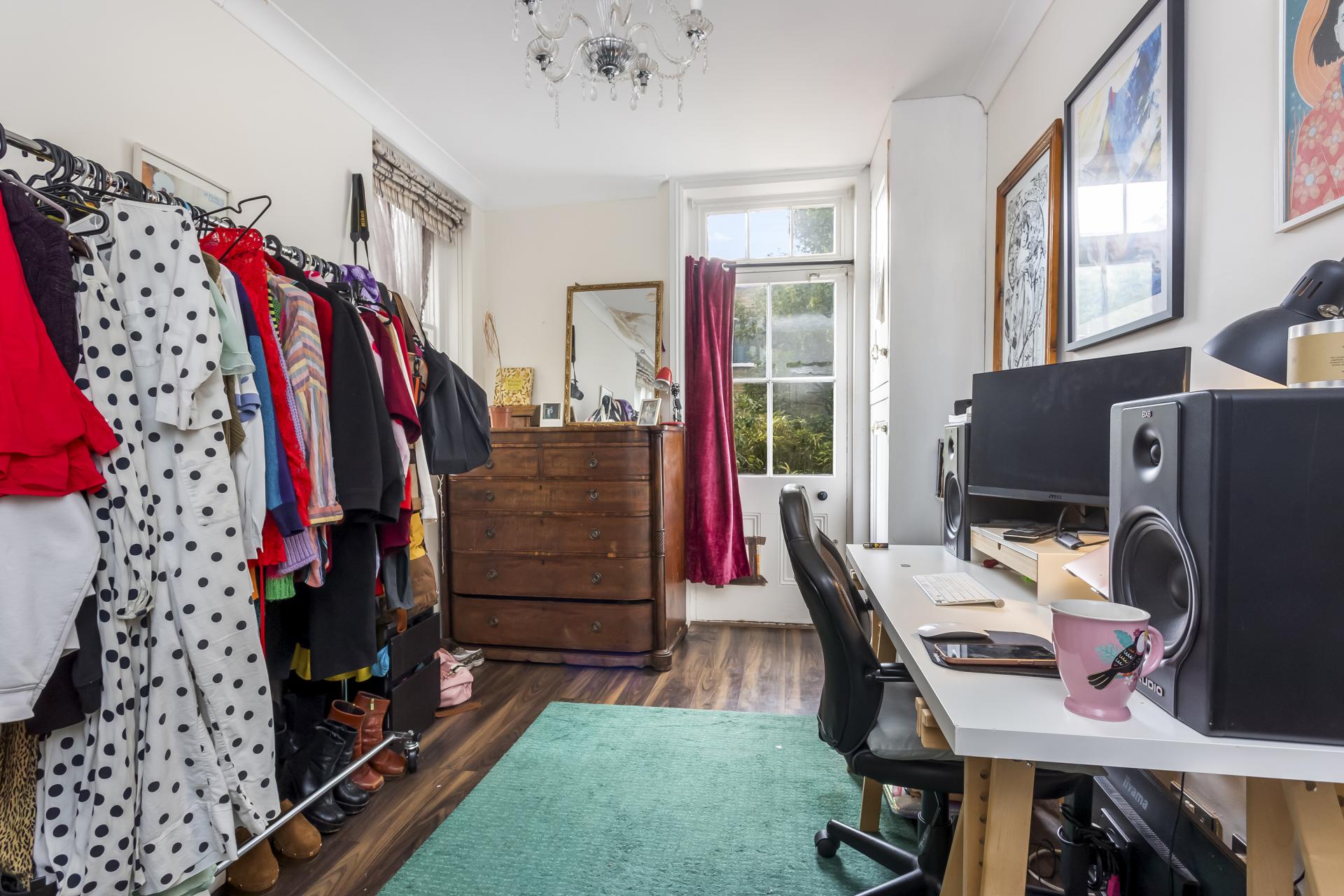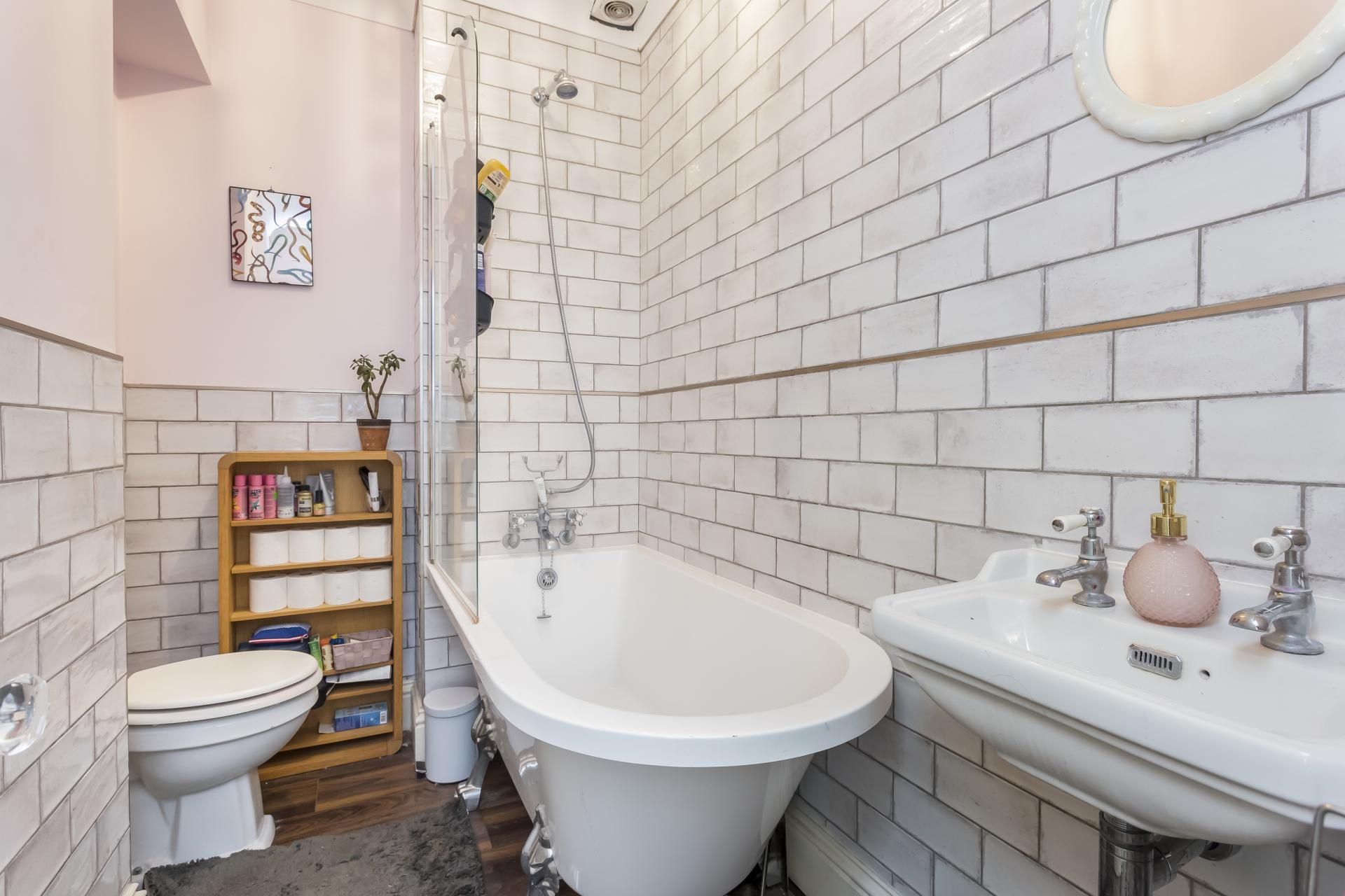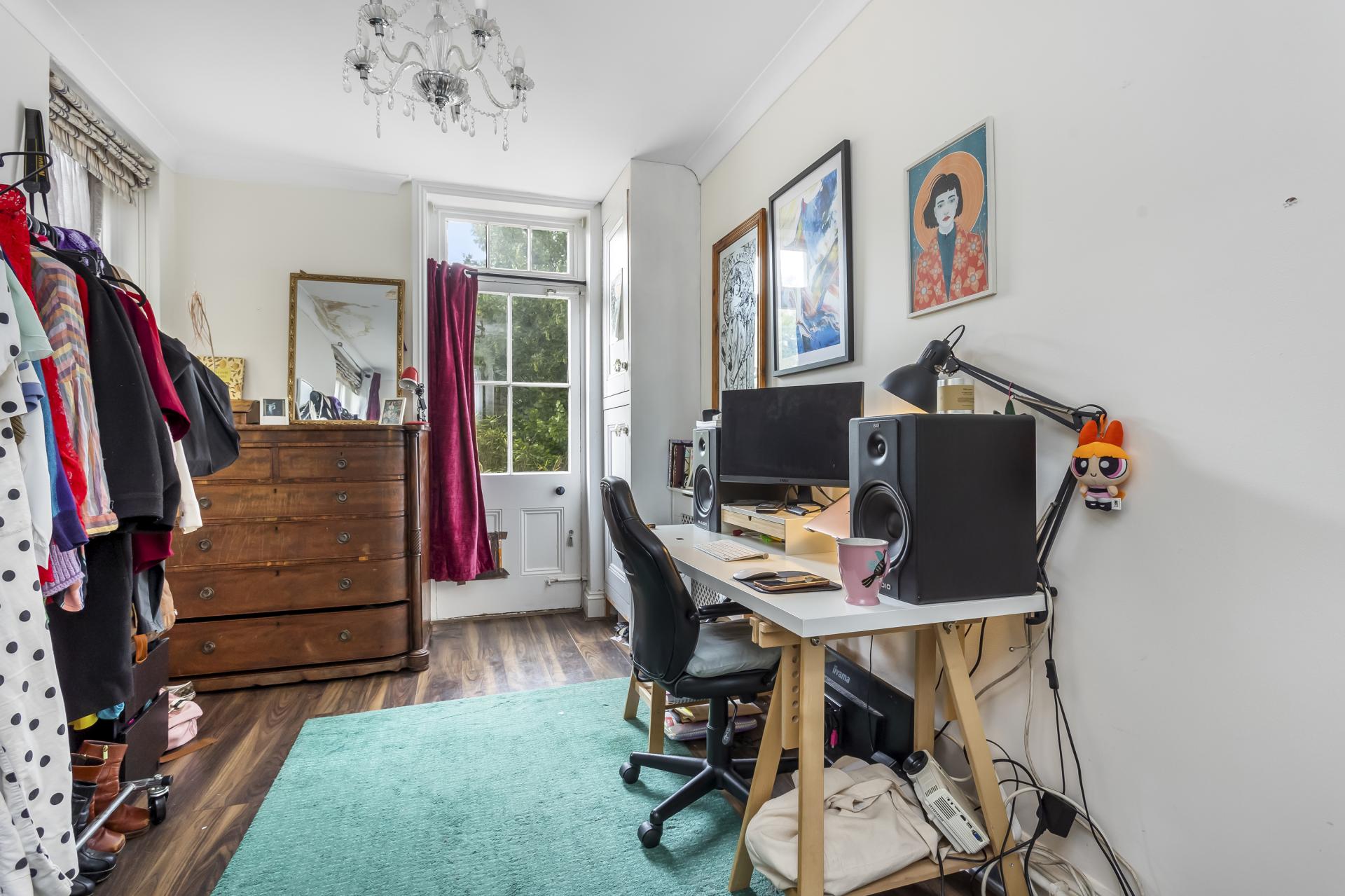 Set on the raised ground floor of a charming period building, the property benefits from a large open plan lounge and modern kitchen, two double bedrooms and a contemporary bathroom suite with an enviable roll-top bathtub. This apartment has its own private west facing patio garden, a stunning selection of period features including high ceilings, a fireplace, decorative cornicing, a intricate ceiling rose and large sash windows. There property also offers a good amount of in-built storage.