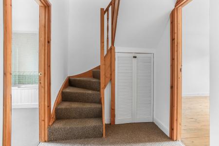Arranged over several floors, this well-proportioned home combines practical features with comfortable accommodation. The ground-floor kitchen connects to the generous living room via French doors, allowing you to open the space up for a more sociable layout or keep the rooms separate as desired. On the first floor, the principal bedroom benefits from a storage/wardrobe area and its own en-suite shower room, while a family bathroom and separate W/C can also be found on this level. The second floor comprises two further double bedrooms, one of which includes a useful additional storage area that can serve as a wardrobe or alternative storage.