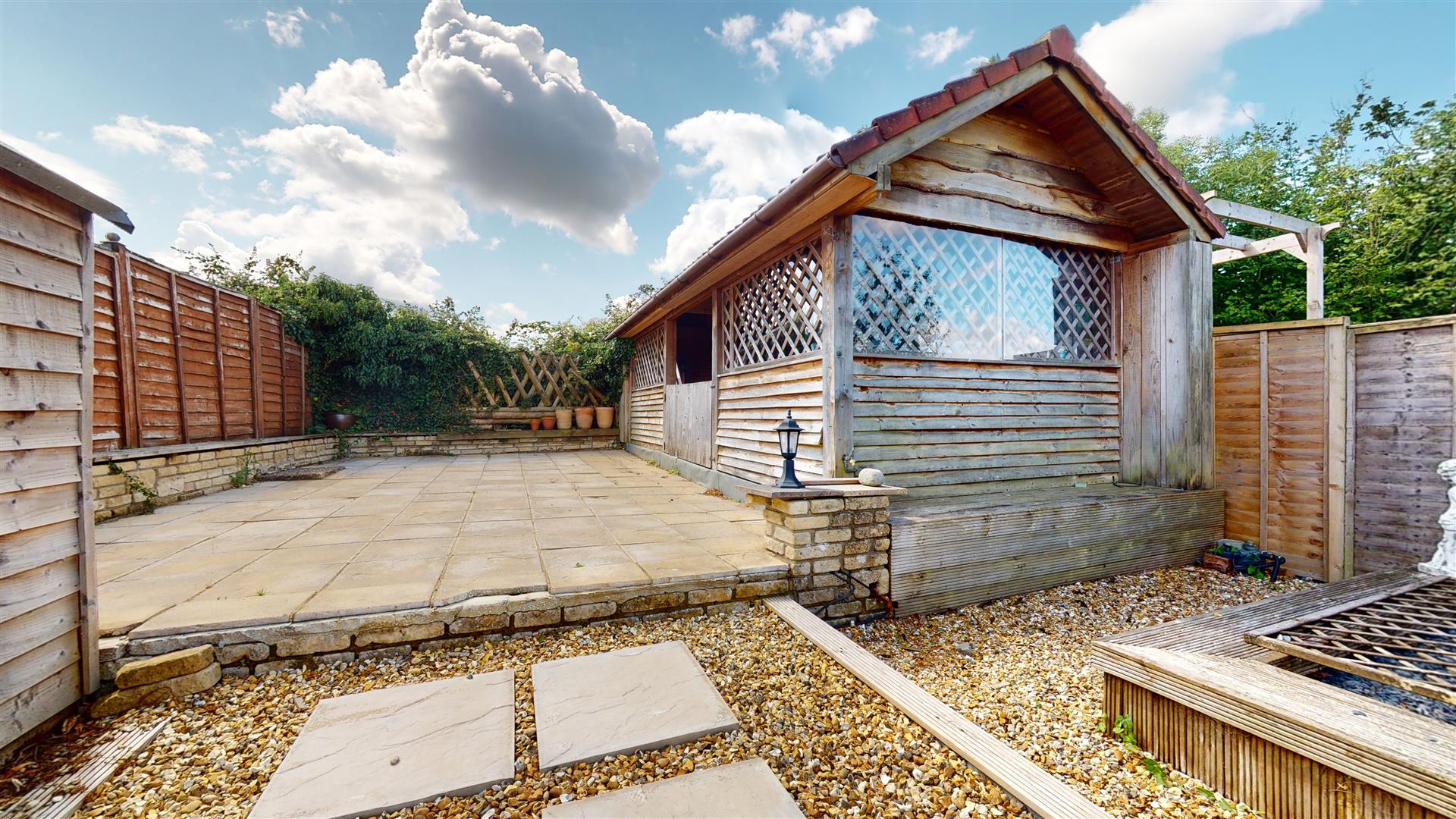 To the rear of the property is a 110ft south facing garden backing on to countryside views. The garden is laid mainly to lawn with a slightly raised patio area and summer house.