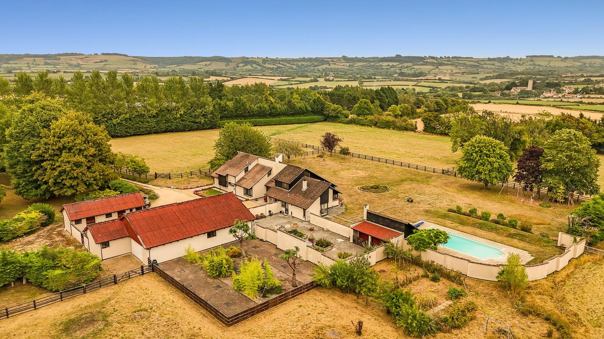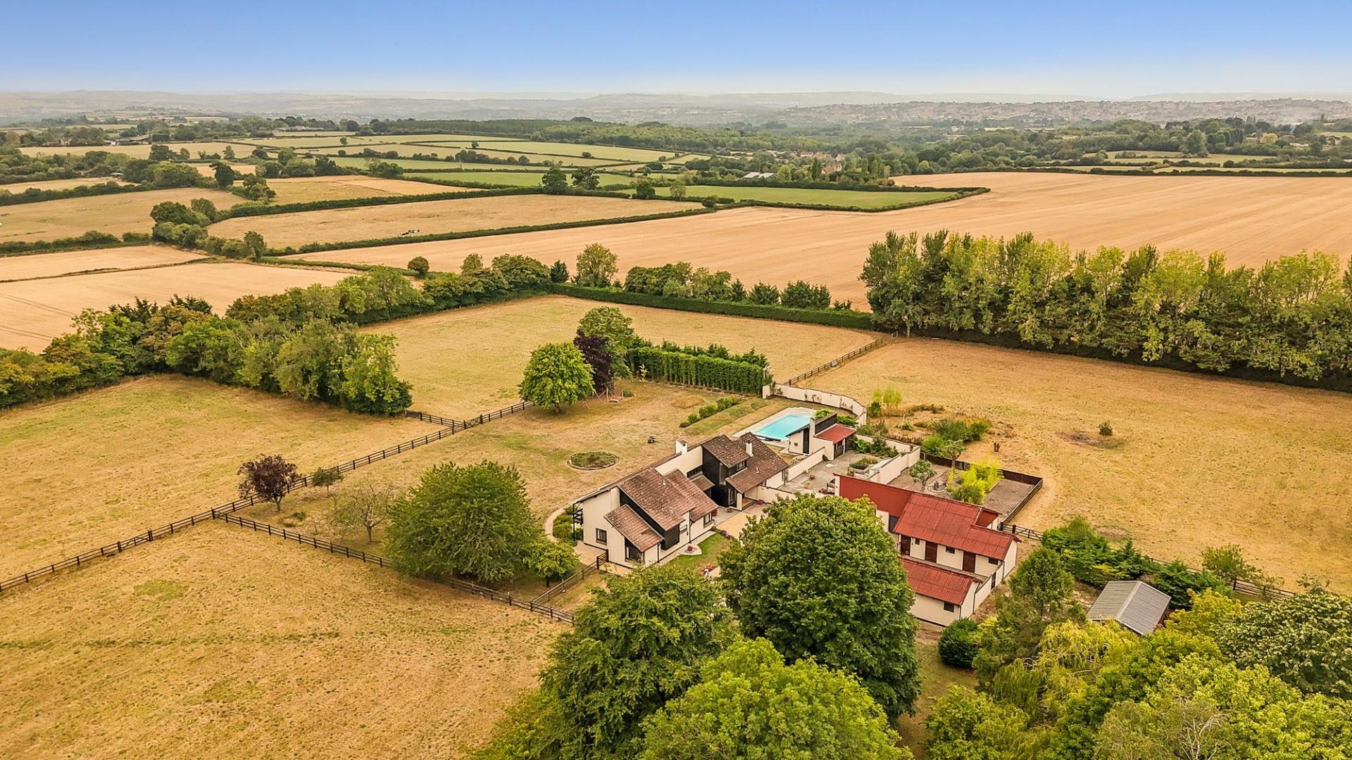 Ideally organised for anyone looking for an equestrian property where you can view your beloved horses from the window of your home, there is a mix of block and wooden stables around a concrete yard, and the paddocks are arranged so they can be rested between seasons. Beautiful views can be enjoyed South towards Lansdown over Abson church to the Southern end of the Cotswold escarpment beyond, to make this a wonderful setting. Incredibly generous accommodation measures over 3200 sq ft, benefits from a light and airy feel throughout, from the many lofty beamed ceilings to the large dual aspect windows. There is a heated swimming pool with pool house and large patio within the formal gardens, plus Japanese and walled gardens, vegetable plot and orchard providing plenty of opportunity for anyone with green fingers. There is also garaging for several vehicles, tractors or mowers and enough driveway parking for horseboxes and all the family!