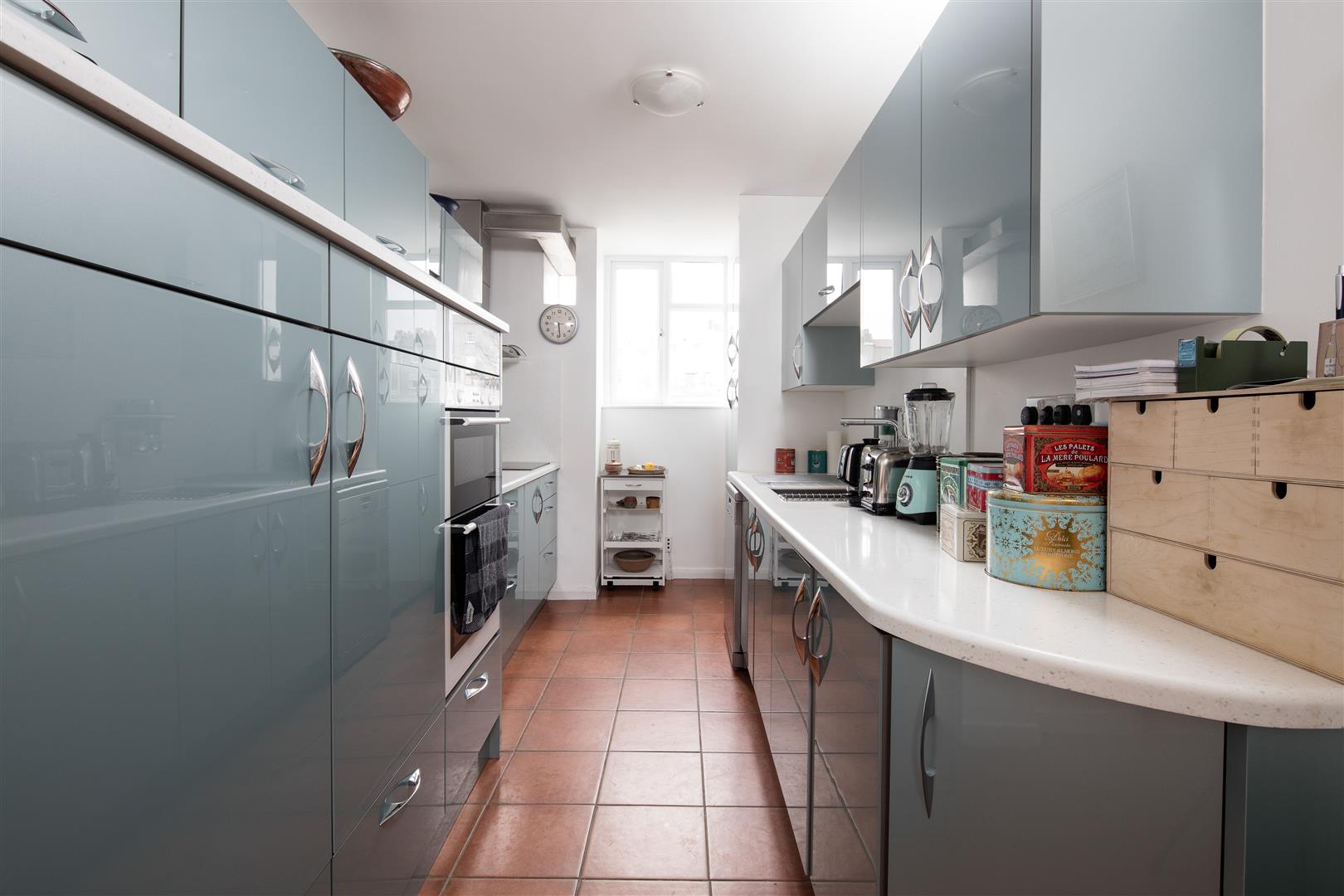 Both rooms provide the most stunning views over Bristol. The hallway also offers access to a well-proportioned study, as well as the attractive family bathroom, master bedroom and kitchen. The master bedroom is a spacious double with ample built in wardrobes and a beautifully appointed ensuite shower room. Off the master bedroom is a balcony which provides space for a small table and chairs and offers a pleasant outlook over Clifton Village. The kitchen contains an attractive range of wall and floor mounted units, the latter topped with a lovely work top, and also allows room for a large dining table, as shown in the photos. The residents have access to the communal gardens in front of the property for a nominal fee which is rolled into the annual service charge. It should be noted that the property is being sold with no onward chain.