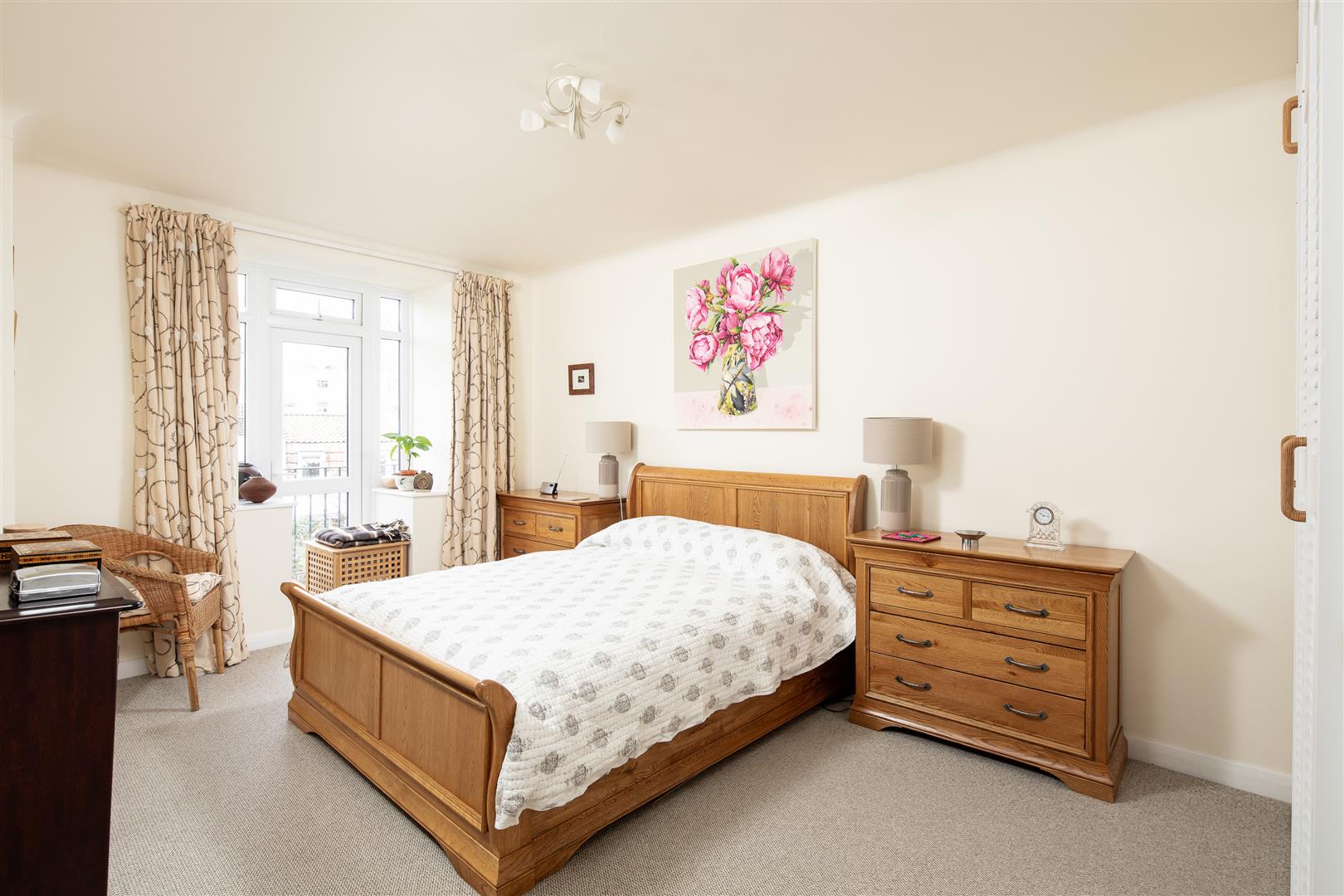 The spacious accommodation provides a generous entrance hallway with two large and useful storage cupboards. At the front of the property there is a sizeable living room, which also allows access to bedroom two.