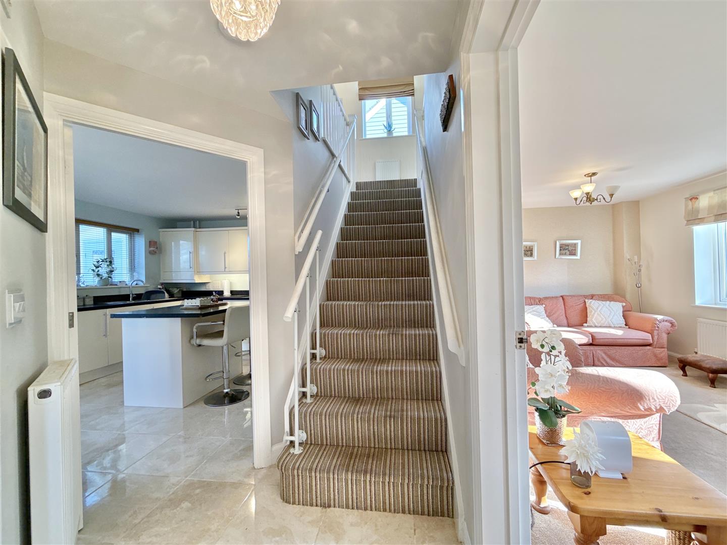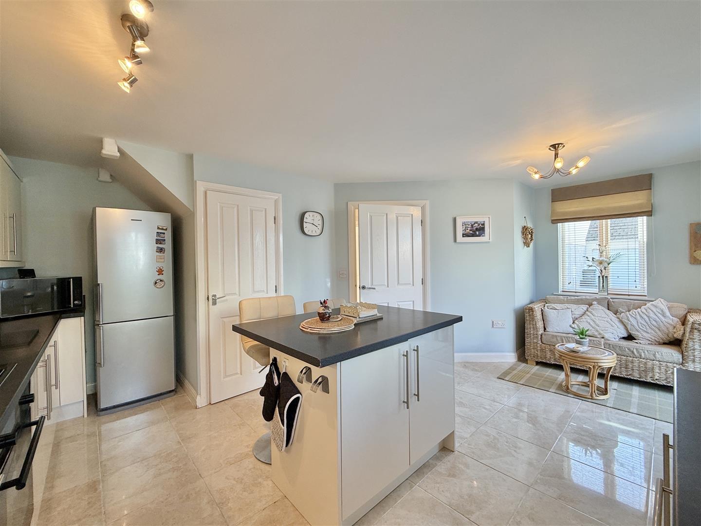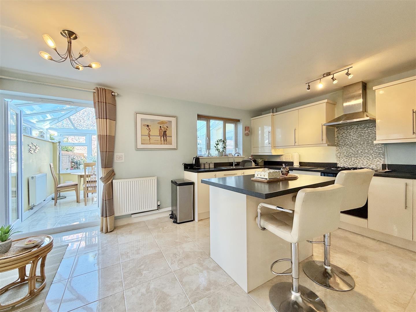 Beautifully presented throughout, the property has been well cared for since new. The welcoming entrance hall features a convenient downstairs WC. To one side is a spacious dual-aspect lounge, while to the other is an impressive kitchen/dining room. The kitchen is finished to a high standard, with stylish worktops, a central island, and generous storage. A particular highlight is the superb garden room-light and spacious, providing the perfect place to relax and enjoy views over the colourful garden.