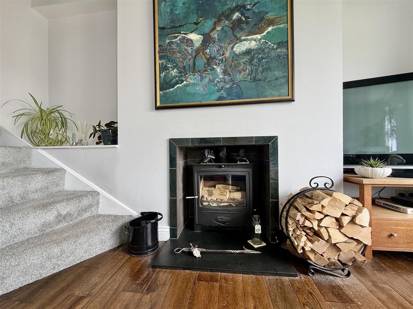 The heart of the home is the welcoming lounge/dining room, where a feature fireplace with a log-burning stove creates a warm and inviting atmosphere - perfect for relaxing evenings or entertaining guests. The fitted kitchen overlooks the rear garden and offers a good range of units, generous work surfaces, and space for appliances.