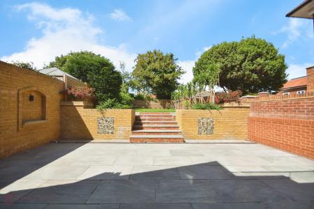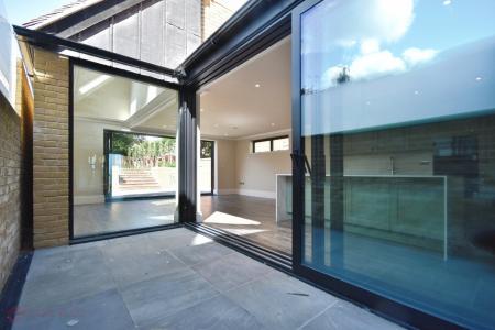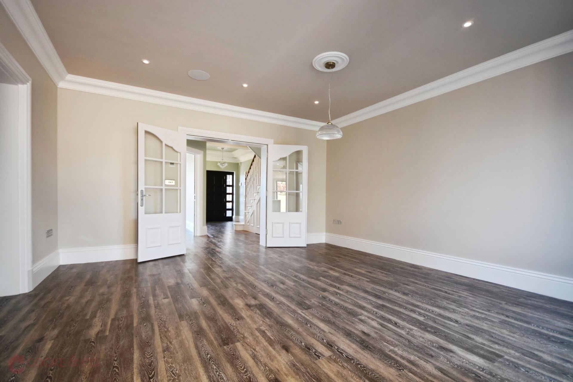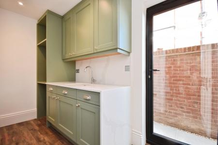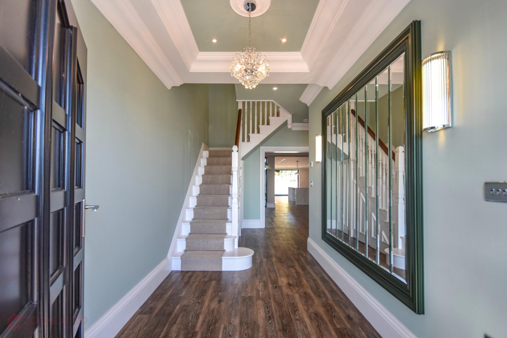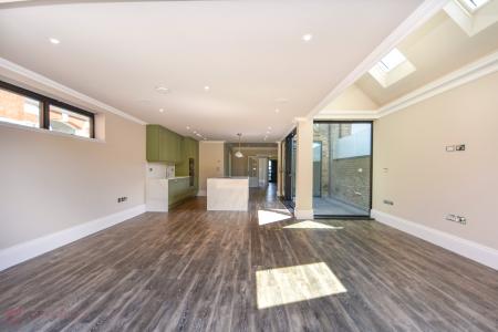 The bright, open-plan kitchen is a real highlight, featuring a stylish island, sparkling marble counter tops, and a light-filled dining space, ideal for sociable family meals. The kitchen flows seamlessly into an inside courtyard, with a utility room offering added convenience for day-to-day living.