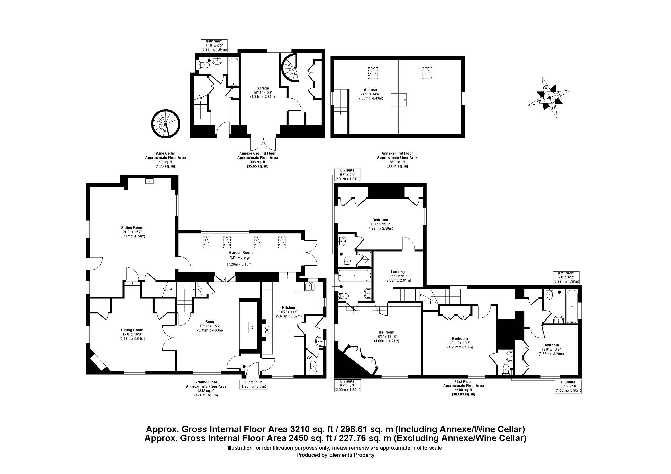 The landscaped garden has been thoughtfully designed and meticulously maintained by the current owners which is mainly laid to lawn and features a variety of young trees, an array of shrubs, and a paved terrace ideal for outdoor dining. There is gated driveway parking for two vehicles in addition to a detached garage. On the ground floor, a single garage provides secure parking, there is also a separate storeroom for tools, bikes, or garden equipment. Discreetly tucked away beneath, an impressive underground wine cellar built by Spiral Cellars. There is further adjoining accommodation with its own private entrance, and is perfect for guests, hobby room or a work from home space, the ground floor features a bathroom, while the first floor opens to a light-filled studio.