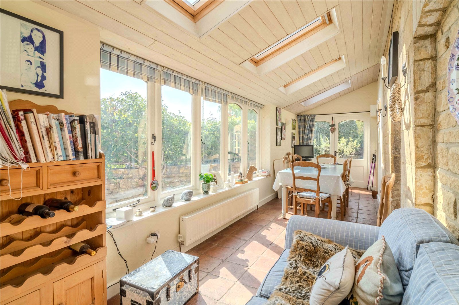 Fern Cottage is a charming 4-bedroom cottage nestled in the heart of a sought-after North Cotswold village, with character features throughout to include exposed timber beams, inglenook fireplaces and flagstone flooring. Originally two cottages, the well-proportioned accommodation is laid out across two floors, the ground floor briefly comprises a snug with a magnificent inglenook fireplace and oak mantle housing an open fire; a dual-aspect dining room with built-in storage and exposed beams; a sitting room with beautiful views over the garden and a box bay window seat; and a kitchen with quarry-tiled floors, a gas AGA, and a range of integrated appliances including a dishwasher. There is also a garden room with Velux windows and French doors opening to the garden. On the first floor are four double bedrooms, three of which are en-suite and a family bathroom.