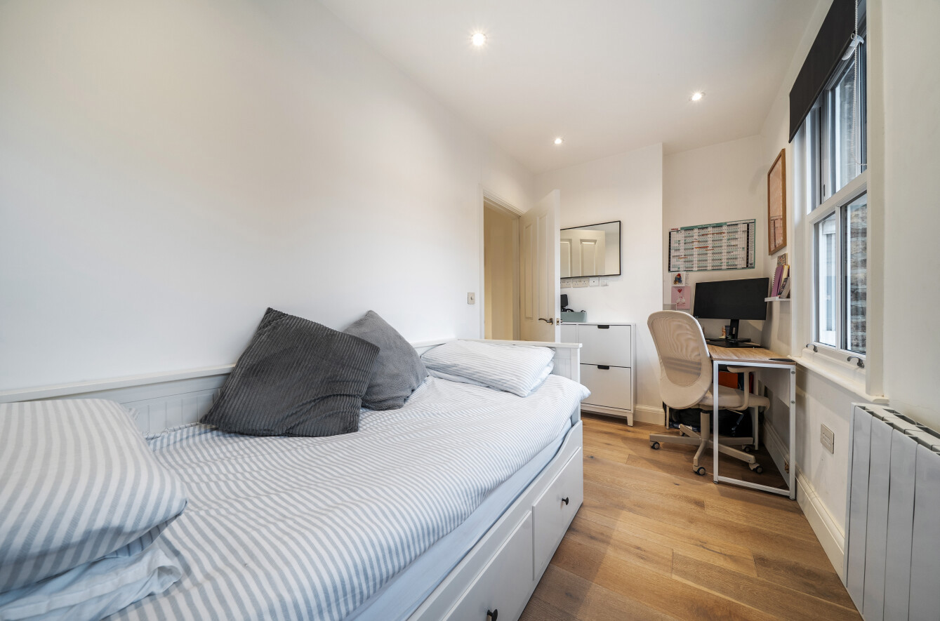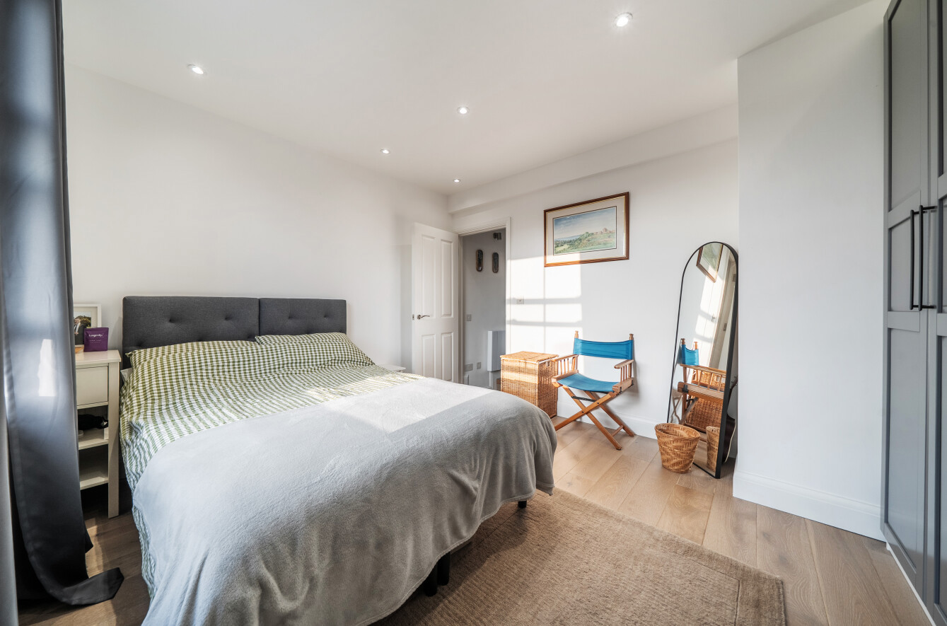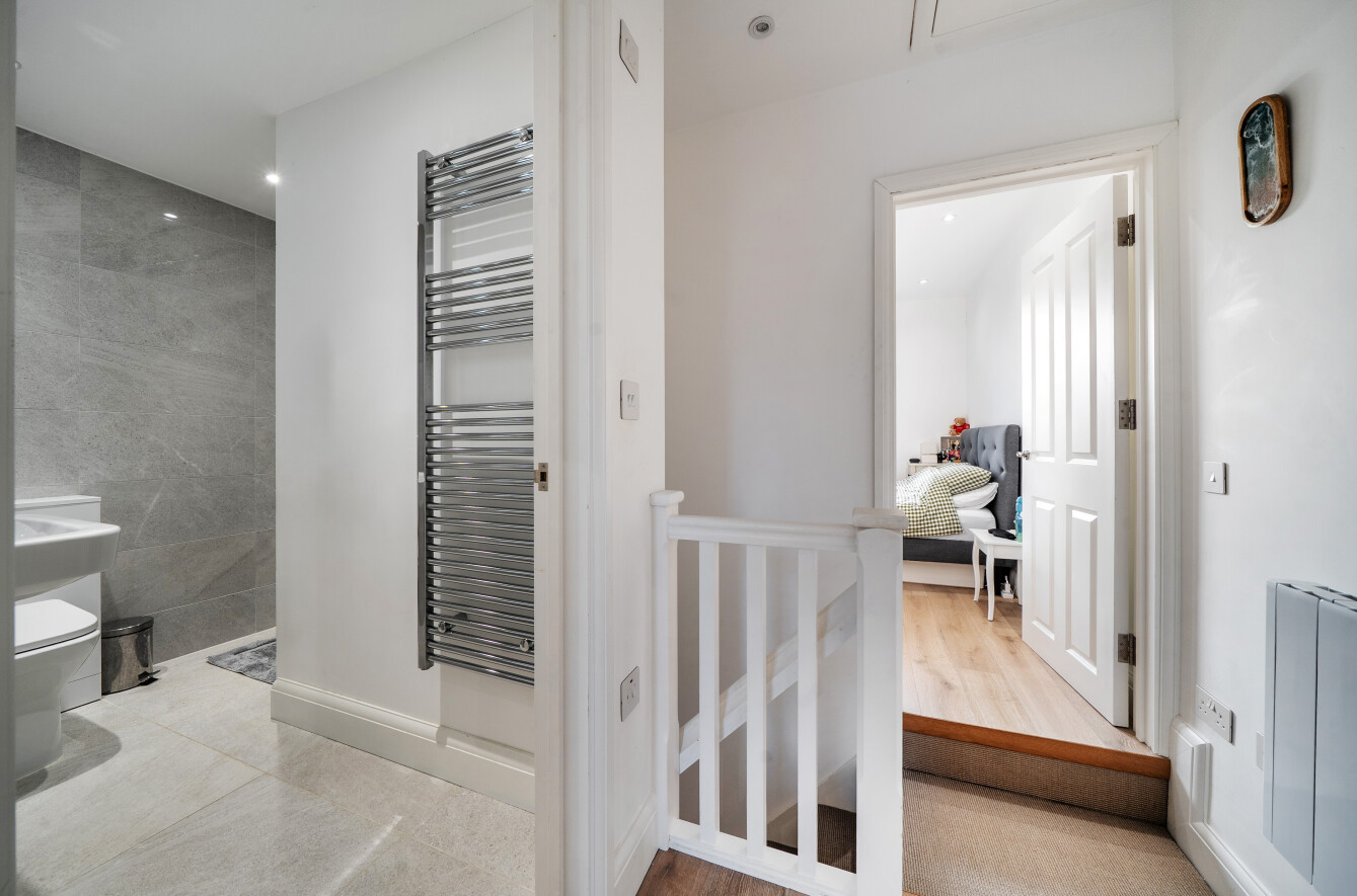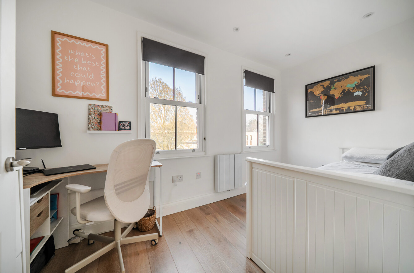 Upstairs, the first floor provides two bedrooms and a family bathroom. The principal bedroom is a generously sized double room positioned at the rear of the property, offering a comfortable and peaceful retreat. The second bedroom, located at the front, is perfectly suited as a guest bedroom, nursery, or home office & loft space convenient for storage. A conveniently located bathroom serves both rooms.