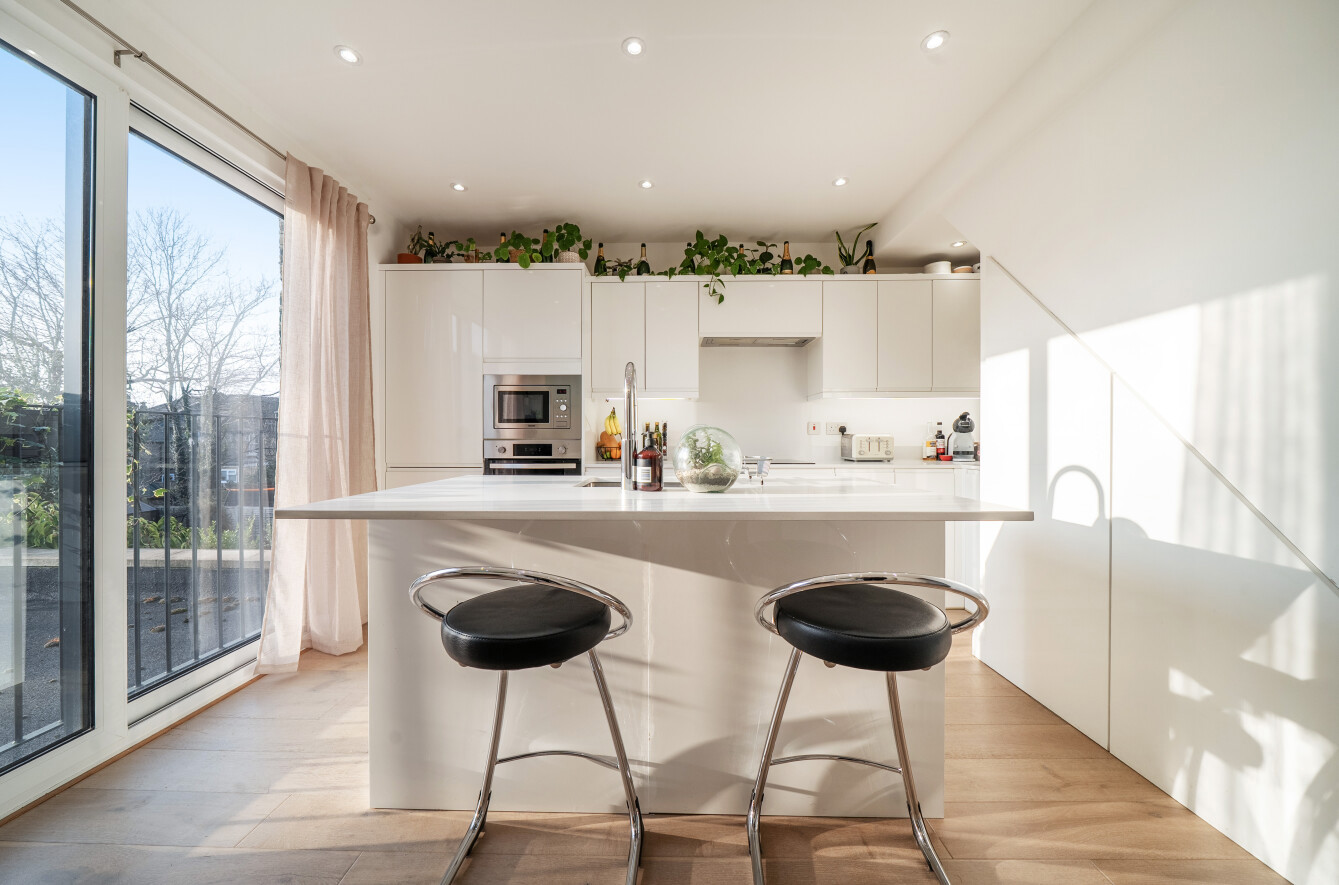 To the rear of the property, the home opens into a spacious kitchen and dining area, thoughtfully designed to provide plenty of room for both cooking and dining. The generous layout with juliette balcony, easily accommodates a dining table and offers an ideal setting for everyday meals or hosting family and friends. The staircase is neatly positioned within this area, maintaining a natural flow throughout the ground floor.