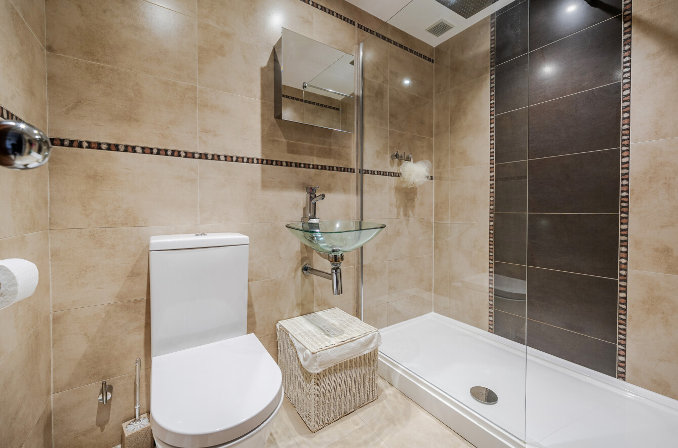 There is also a shower room which is equally well presented with feature tiling, large walk in shower cubicle, glass basin and WC.