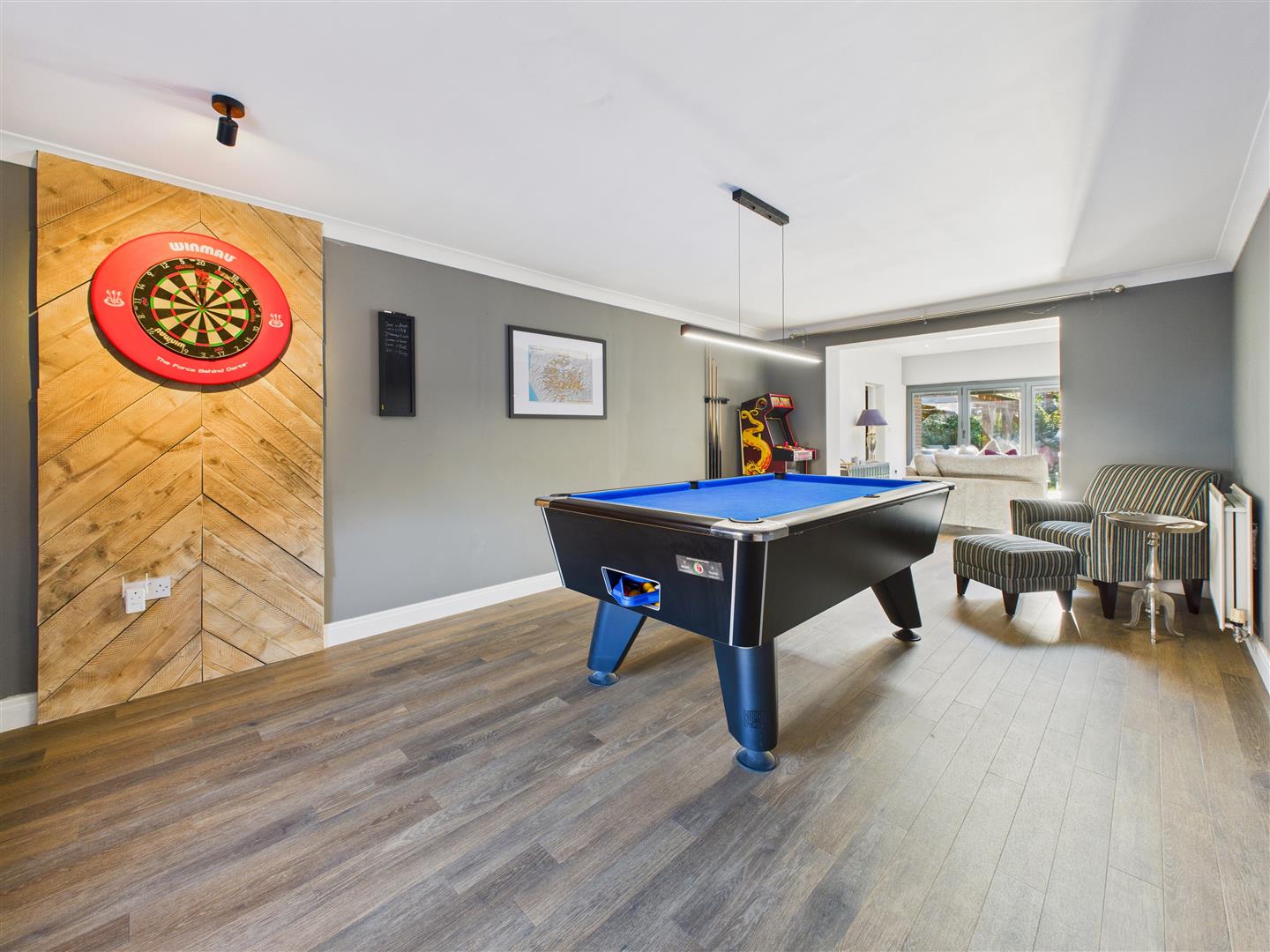 Lounge - Currently used as a games room, with a window to front and opening to the extended garden room.