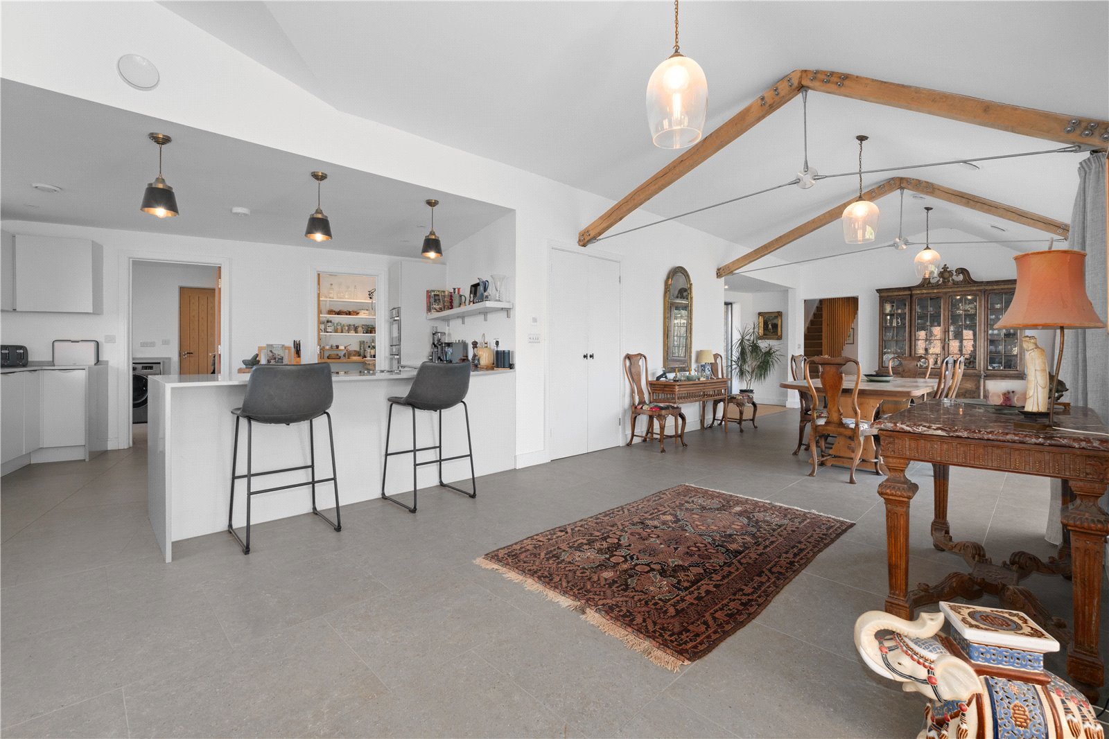 As you enter the home, you are immediately met with the most incredible living space — the true heart and hub of the house. A spectacular open plan arrangement seamlessly combines the dining area, reception room and kitchen, creating a sociable and light-filled environment perfectly suited to modern living.