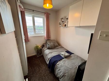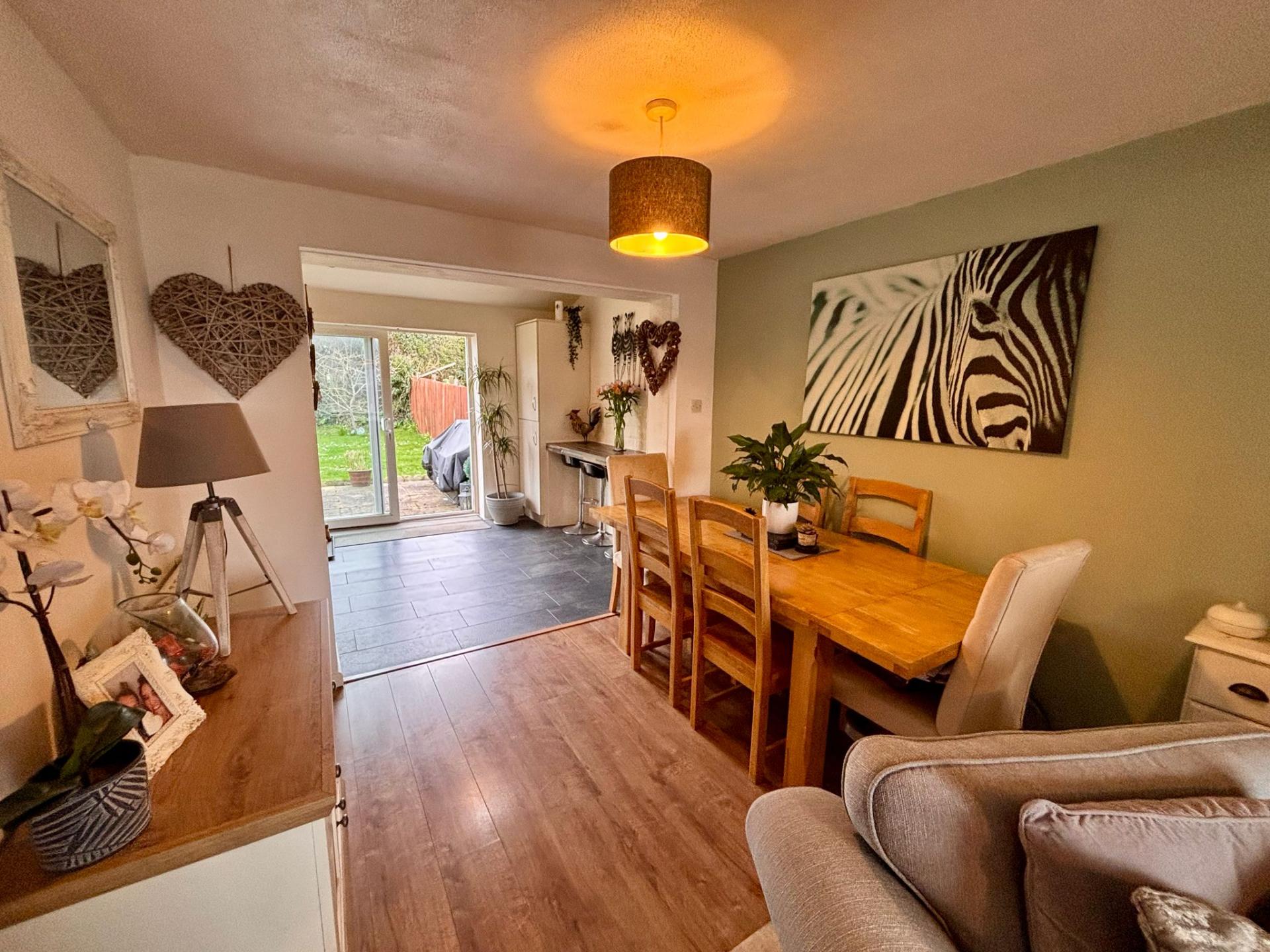The dining room flows from the living room and offers further light and bright space. With direct access to the rear garden through sliding patio doors, it effortlessly combines indoor and outdoor living.