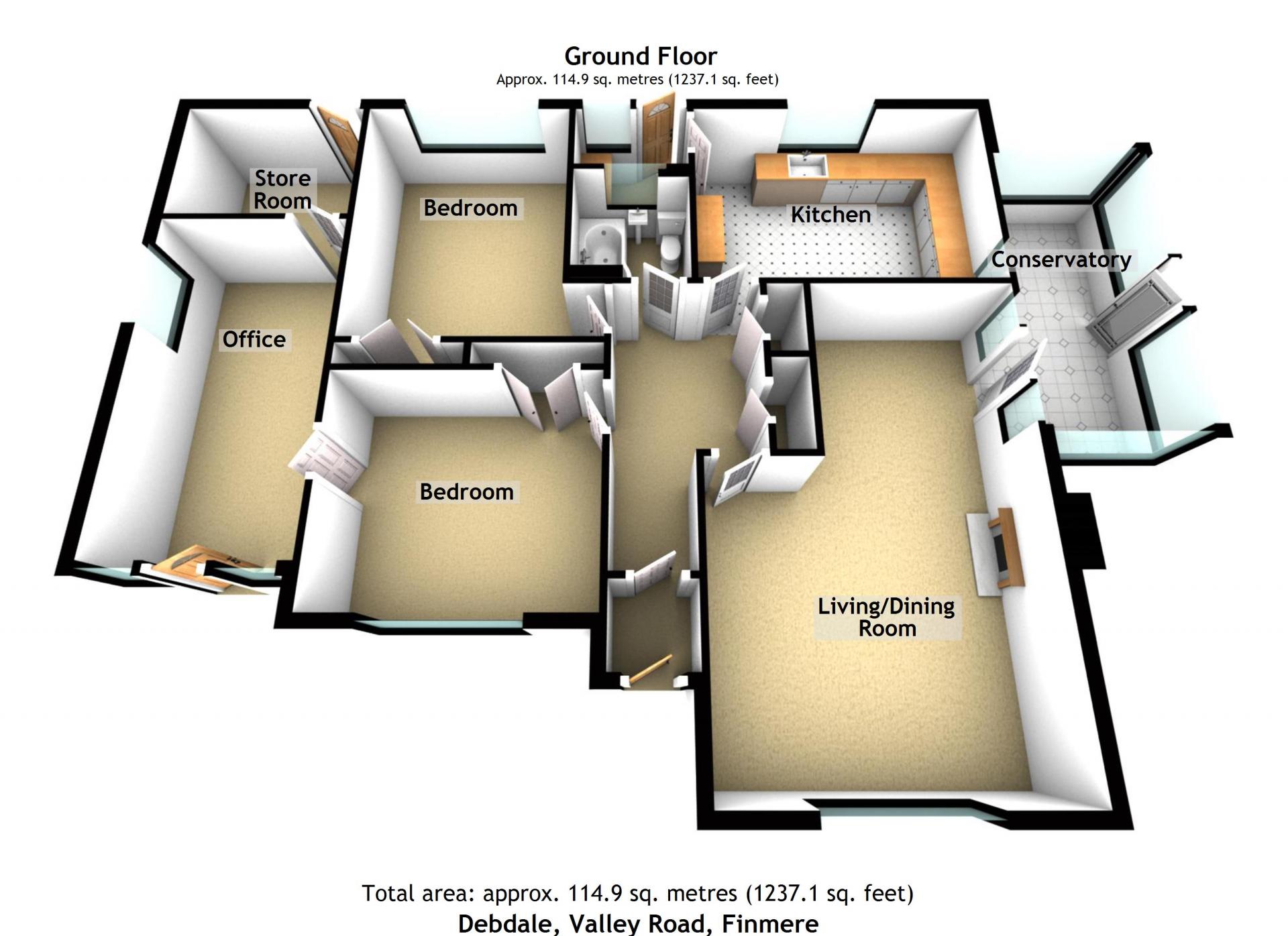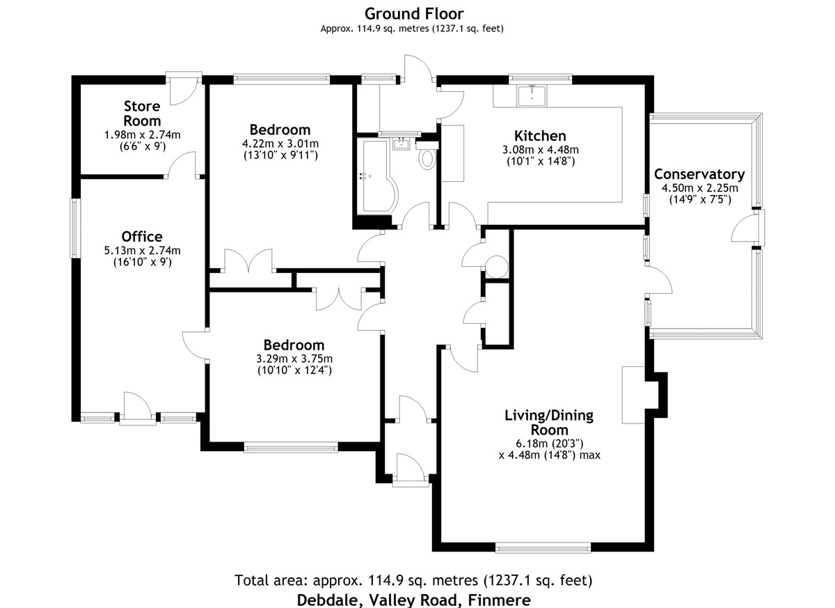 Complimenting the existing accommodation is an adjoining studio/home office with a uPVC front door, a double glazed window to the side and two double glazed windows to the front. There is also a useful store room with a door leading to the garden.