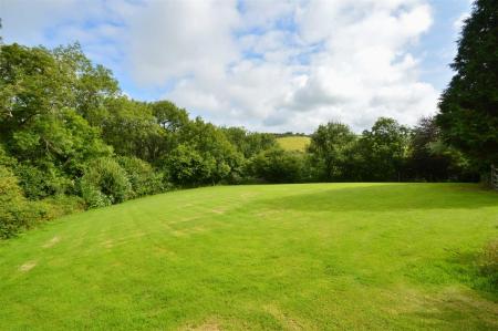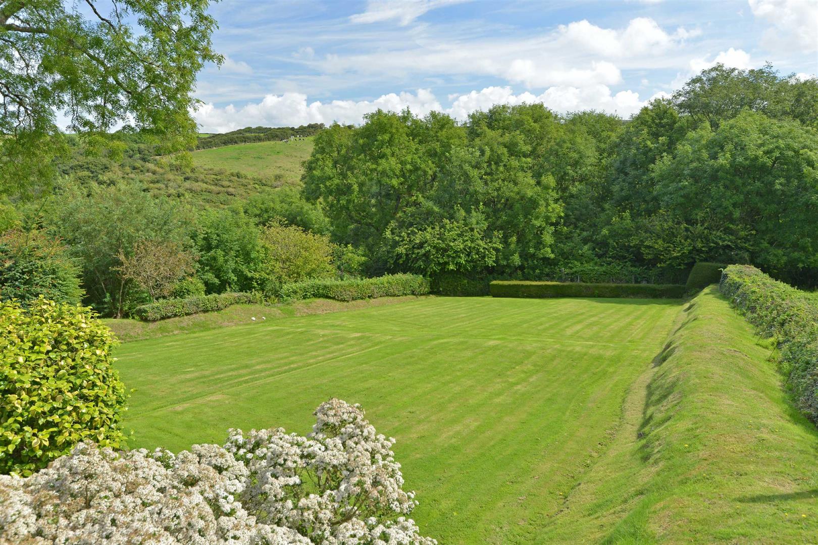 Gardens - From the quiet parish road a gated entrance between stone pillars opens on to a gravel drive sweeping down through the gardens to a large parking and turning area to the side of the house. The delightful formal gardens are a particular feature of the property, with gently sloping lawns fringed and interspersed with a plethora of colourful flowering shrubs, plants and ornamental trees, including rhododendron and azalea. An added point of interest is the old mill wheel, still in situ behind the barns. Beyond the gardens are extensive areas of natural woodland sloping down to the stream at the bottom of the valley and being a haven for wildlife.