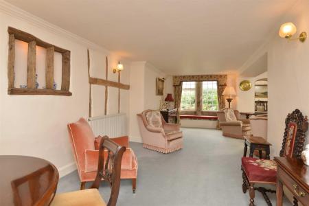 From the paved terrace, the main front door opens to an entrance hall which serves the formal dining room with stone inglenook fireplace with bread oven and part wood panelled walls. The large L shaped drawing room with fireplace and to one of the staircases to the first floor.