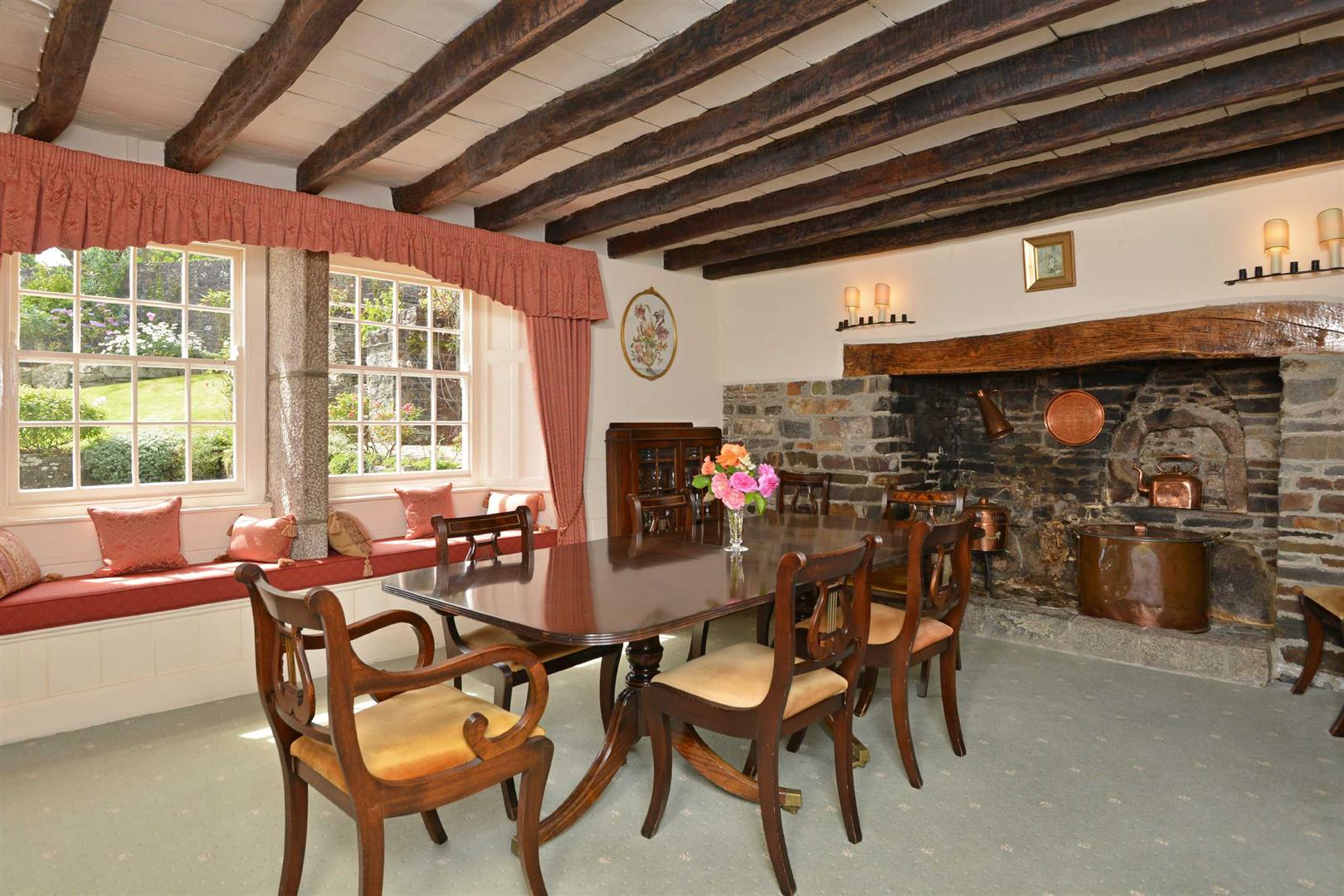 A fine, spacious, historic house, of considerable character and charm which has evolved over the centuries and retains many of its period features from different eras, both granite mullion and sash windows, exposed timbers, slate flag stone floors, built in window seats and decorative cornicing.