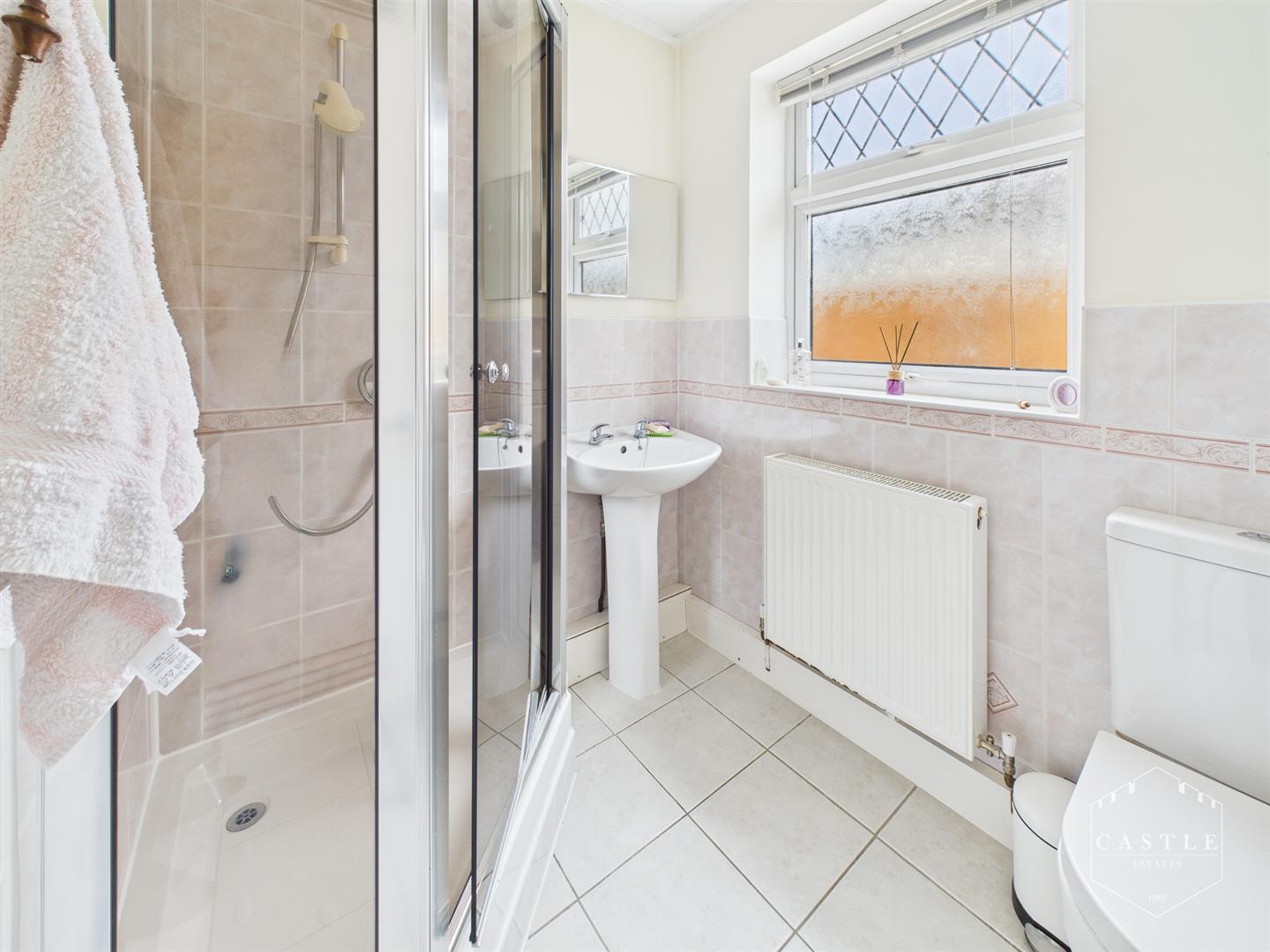 Shower Room - 1.95m x 1.71m (6'4" x 5'7" ) - having fully tiled shower cubicle, low level w.c., pedestal wash hand basin, central heating radiator, ceramic tiled splashbacks, shaver point and upvc double glazed window with obscure glass.