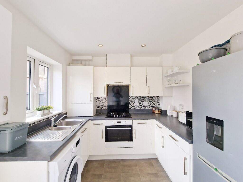 Kitchen Diner:- - 13'11 x 8'6 - Double glazed window and double doors to rear garden, range of high gloss wall and base units with solid work surfaces, integrated dishwasher, washing machine, fridge freezer, oven and hob. Radiator.