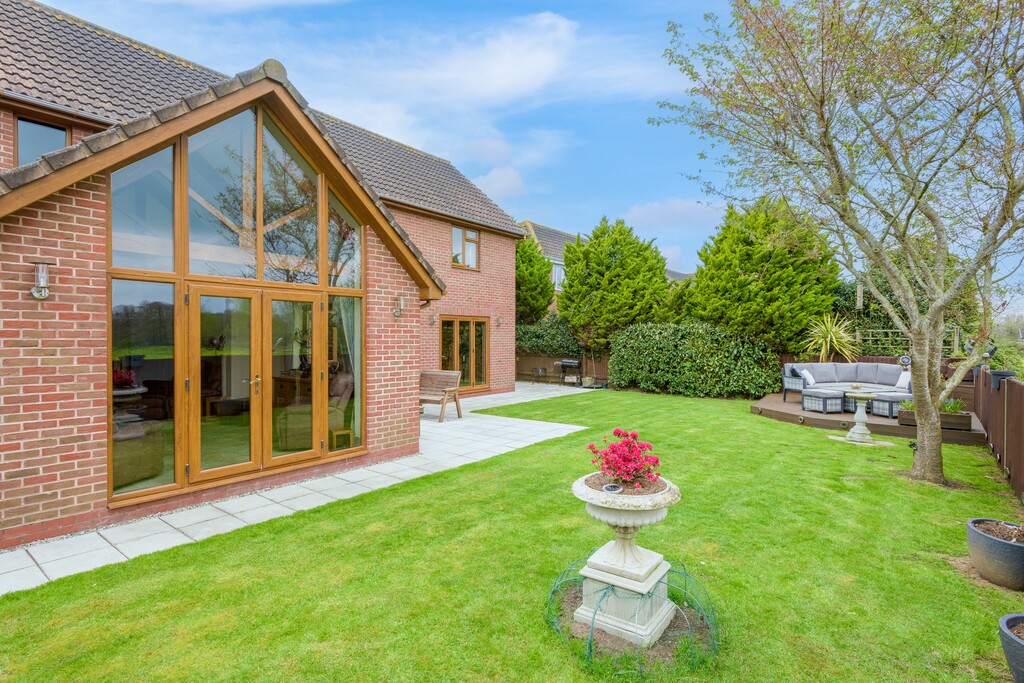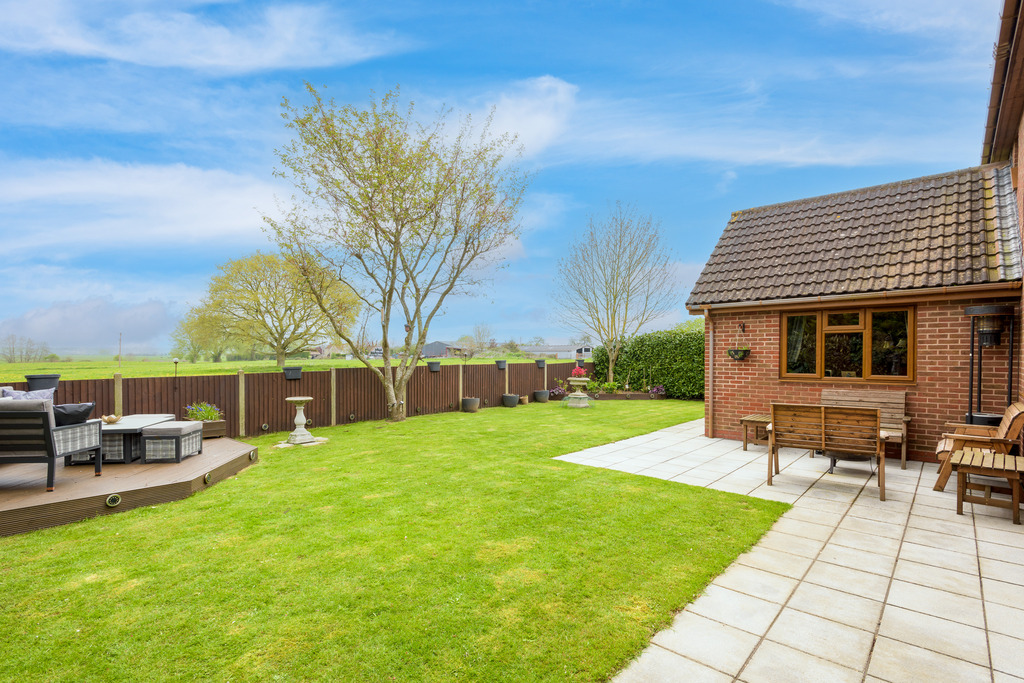 - Neatly landscaped garden, laid to lawn with large patio terrace and sunny deck seating area