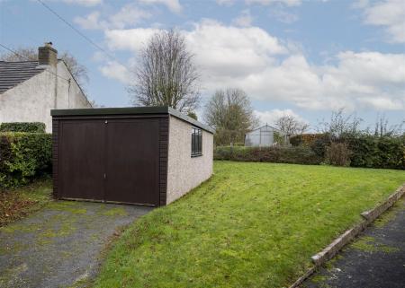 Front - Drive, large garden plot, lawn, established beds, hedge boundary to front, wall boundary to side.